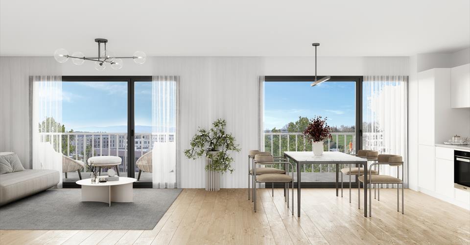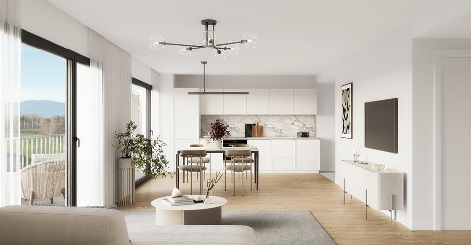 Une gamme étendue Découvrez nos trois immeubles offrant une grande variété de logements, spacieux 1.5 pièces (41 m2), des 2.5, des 3.5 pièces et des 4.5 pièces aux espaces généreux. Vous trouverez assurément celui qui correspond à vos besoins et à votre style de vie. Profitez de la douceur des journées ensoleillées sur les belles terrasses et dans les jardins privés des rez-de-chaussée, ou détendez vous sur les larges balcons des étages tout en préservant votre intimité. Chaque appartement est également accompagné d’une cave, offrant ainsi un espace de rangement pratique et organisé. La garantie Minergie confort, efficacité, durabilité Les bâtiments Minergie contribuent à la réalisation des objectifs climatiques grâce à leur faible consommation d’énergie, l’utilisation d’énergies renouvelables et, donc, de faibles émissions de CO2. Les bâtiments certifiés répondent aux exigences les plus élevées en termes de confort et d’efficacité énergétique. Il s’agit notamment des exigences sur la protection thermique estivale, la qualité de l’air et le monitoring énergétique. Les bâtiments Minergie ont une consommation d’énergie et des émissions de CO2 inférieures à celles des bâtiments conventionnels. Proximité et mobilité Bussigny a su conjuguer tradition et modernité. Une offre complète de services et une infrastructure de transports publics hors norme qui favorise la mobilité douce. Un esprit villageois qui prédomine à quelques encablures du centre ville de Lausanne. Avec un accès rapide aux principaux axes routiers et aux transports en commun, sa situation géographique stratégique en fait un point de départ idéal pour vos déplacements.