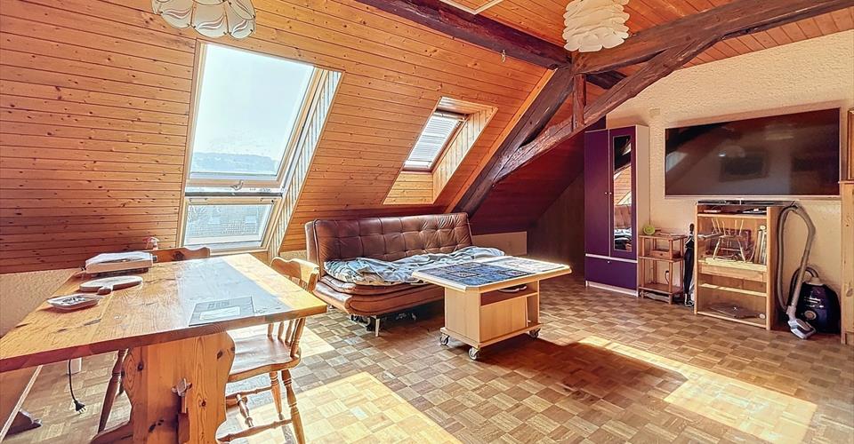 Situé au troisième étage avec ascenseur d’un immeuble construit en 1981 et rénové en 2017, ce bel appartement contient une chambre et un salon avec cuisine ouverte orienté sud-ouest! En plein centre de Lucens et proche de toutes les commodités, ce bien répondra à toutes vos attentes ! L’appartement se compose ainsi: – Un hall d’entrée – Une salle de douche – Une belle chambre sous les combles – Une cuisine fonctionnelle ouverte sur le salon L’immeuble fonctionne sur un système de chauffage doté d’un chaleur-force, groupe cogénération (CCF) et de panneaux solaires, répondant aux normes écologiques des plus actuelles. Le CCF chauffe l’eau sanitaire et produit de l’électricité. Les panneaux solaires : puissance installée 20 Kwc Une cave incluse dans le prix Une place de parc souterraine à CHF 30’000.- non-incluse dans le prix D’autres lots sont disponibles dans la PPE ! Appelez nous sans tarder pour une visite !