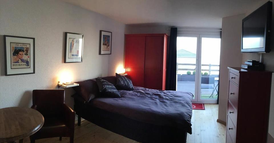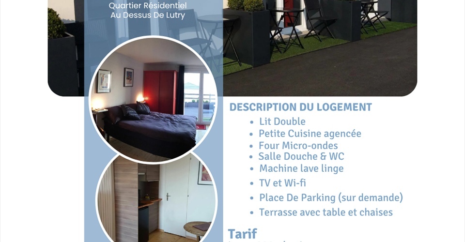 Description du logement Salle Douche & WC Lit Double Petite Cuisine agencée Four Micro-ondes Machine lave linge TV et Wi-fi Place De Parking (sur demande) Terrasse avec table et chaises Tarif Loyer 990.-/mois Charges 180.-/mois Place de parc 80.-/mois (sur demande) Durée : Minimum 6 mois Contact 41 79 544 54 08 admjulier@gmail.com