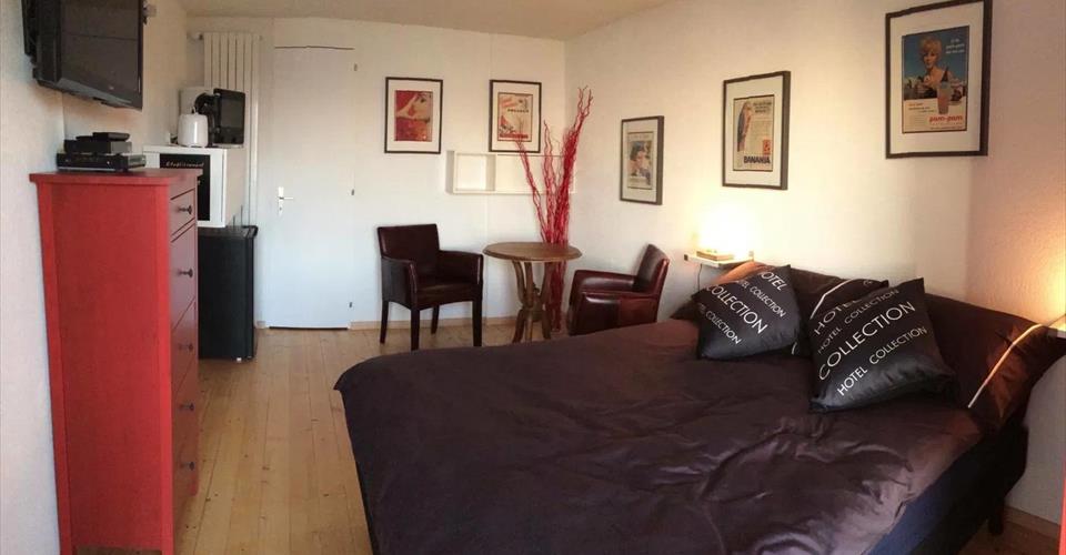 Description du logement Salle Douche & WC Lit Double Petite Cuisine agencée Four Micro-ondes Machine lave linge TV et Wi-fi Place De Parking (sur demande) Terrasse avec table et chaises Tarif Loyer 990.-/mois Charges 180.-/mois Place de parc 80.-/mois (sur demande) Durée : Minimum 6 mois Contact admjulier@gmail.com