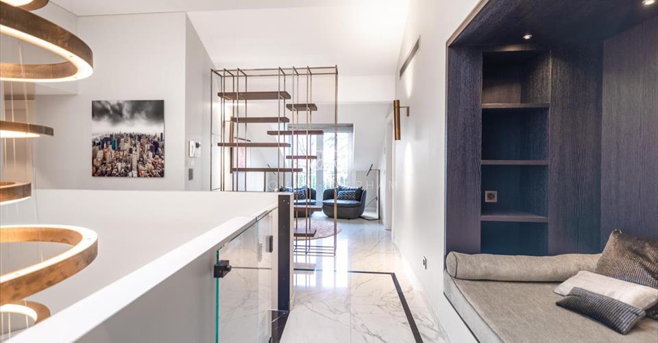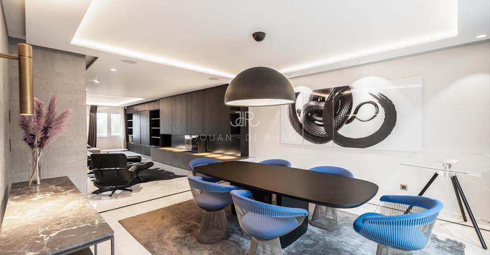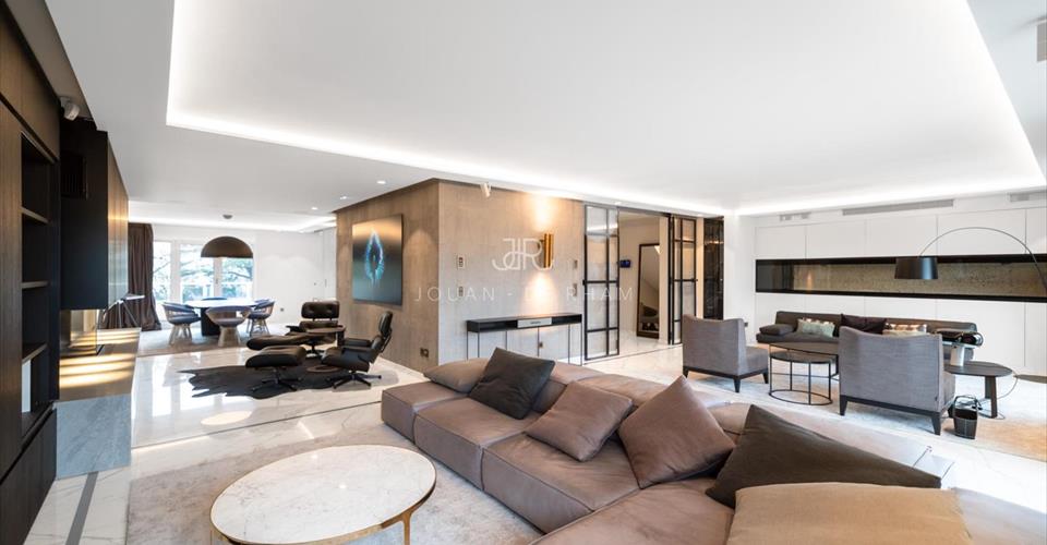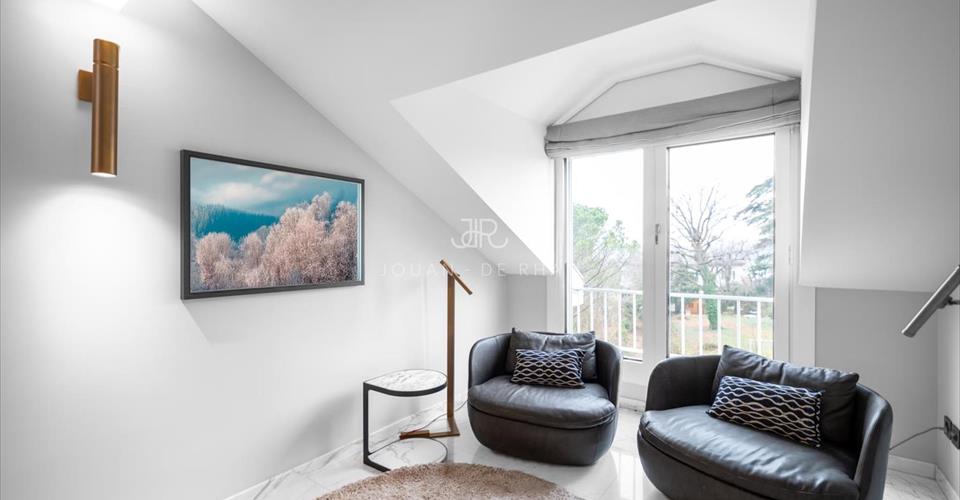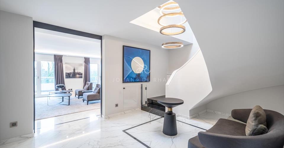 Nous avons le privilège de vous présenter ce magnifique appartement situé au coeur de Cologny. La proximité avec les commerces locaux, les transports publics, les écoles ainsi que le centre-ville de Genève rendent cette propriété attractive en tout point. Entièrement rénové avec des matériaux nobles, ce somptueux duplex est un modèle du genre en termes de style et d’architecture. Aucun détail n’a été laissé au hasard et le résultat final est époustouflant. Du marbre orne les sols de ce bien dont les espaces et volumes saisissent par leur omniprésence. L’entrée s’effectue au deuxième étage avec un niveau entièrement dédié à la partie jour composée de magnifiques pièces de réception en enfilade, les grandes portes-fenêtres (sécurisées) invitent une lumière omniprésente qui illuminent un immense double salon de 70 m2, un coin cheminée et une agréable salle à manger. Une belle terrasse offre de magnifiques vues dégagées sur la campagne et les montagnes. Pièce centrale de cet étage, la cuisine parfaitement équipée est l’endroit idéal pour profiter d’un lieu de vie familial et chaleureux. Le troisième étage est quant à lui dédié à la partie nuit avec ses quatre chambres ensuite. Une cave, de nombreux rangements et 6 places de parking (box intérieurs) complètent l’offre de cet appartement inestimable.