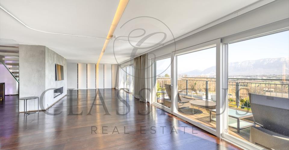 Découvrez cette appartement d’exception, situé dans la commune prisée de Confignon, offrant un cadre de vie rare et luxueux à quelques minutes de Genève. Alliant design contemporain, volumes généreux et prestations haut de gamme, cette propriété unique vous séduira par son confort absolu. Caractéristiques principales Surface habitable : 412 m² Surface pondérée : 425 m² (loggias et balcon inclus) Nombre de pièces : 10 (dont 4 chambres spacieuses) Salles de bains : 4 salles de bains privatives Année de construction : 2010 Une expérience unique Espaces de vie exceptionnels : Séjour lumineux et spacieux, avec accès direct aux loggias et balcon, offrant un cadre parfait pour recevoir. Cuisine de chef : Cuisine entièrement équipée avec des appareils professionnels et une cave à vin vitrée, idéale pour les passionnés de gastronomie. Espace nuit prestigieux : Suite parentale avec dressing et salle de bains privative, plus trois chambres spacieuses et bien agencées. Bien-être ultime : Hammam, sauna et jacuzzi, pour des moments de détente inégalés dans le confort de votre appartement. Domotique et confort : Système domotique avancé, régulation de la température et isolation haut de gamme pour un confort optimal. Sous-sol fonctionnel : Local de 36 m², à usage variable selon vos besoins. Un extérieur d’exception Loggias et balcon spacieux : Idéals pour profiter de l’extérieur et des vues sur le quartier calme. Lumière naturelle : Grandes fenêtres offrant une luminosité constante tout au long de la journée. Parkings et accès exclusif Box privés : Un box double et un box simple, garantissant sécurité et confort. Ascenseur privé : Accès direct à l’appartement et au parking pour une expérience pratique et exclusive. Pourquoi Confignon ? Quartier résidentiel calme et recherché, à proximité de Genève, avec écoles, commerces et parcs à proximité, offrant un cadre de vie exceptionnel. Cette appartement d’exception est disponible sur demande. N’hésitez pas à nous contacter pour organiser une visite privée et vous laisser séduire par ce bien unique.