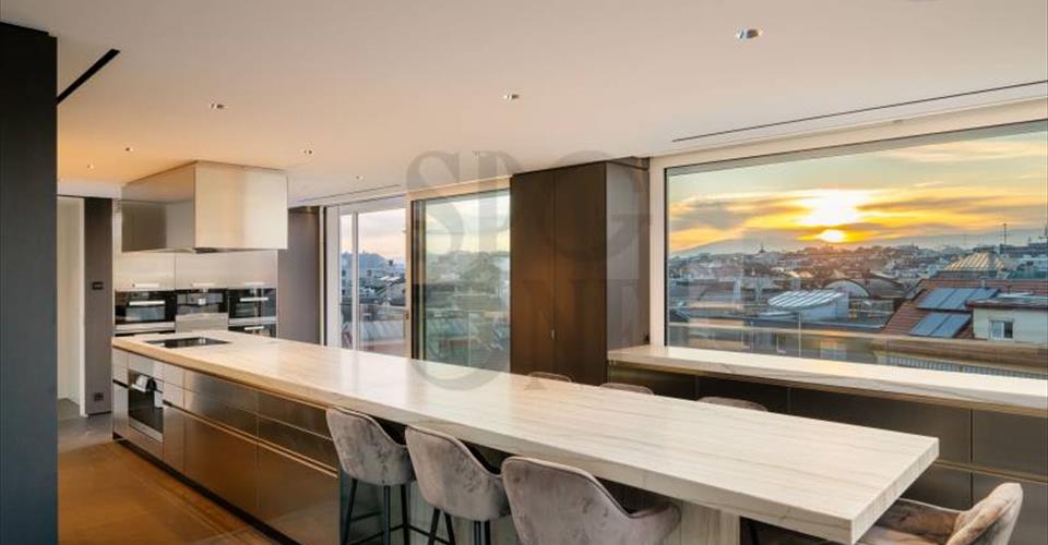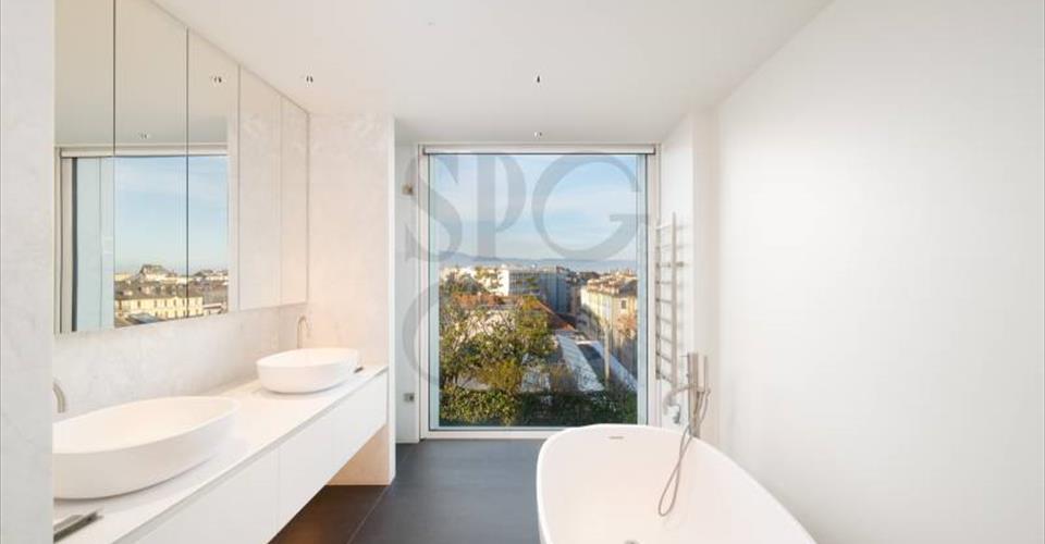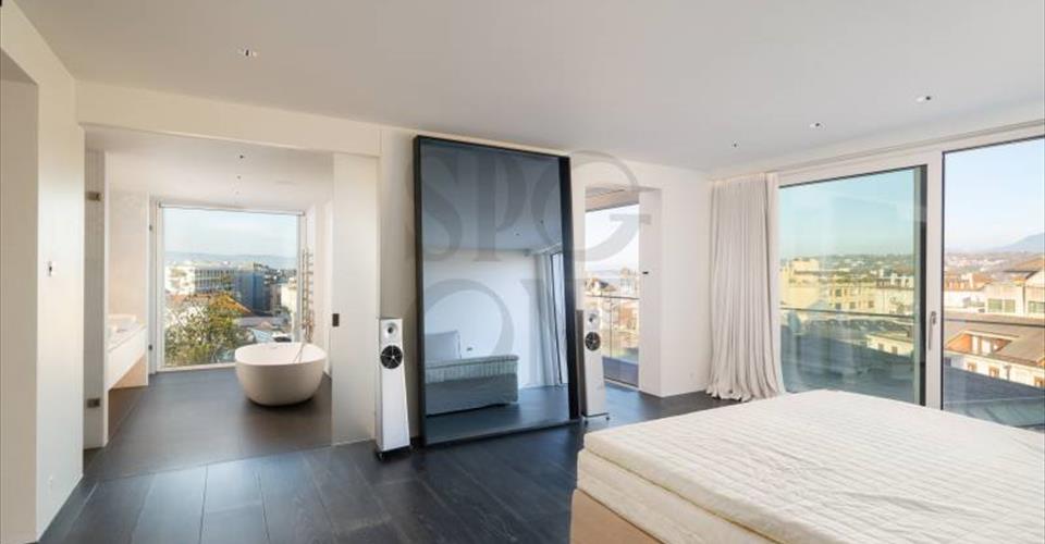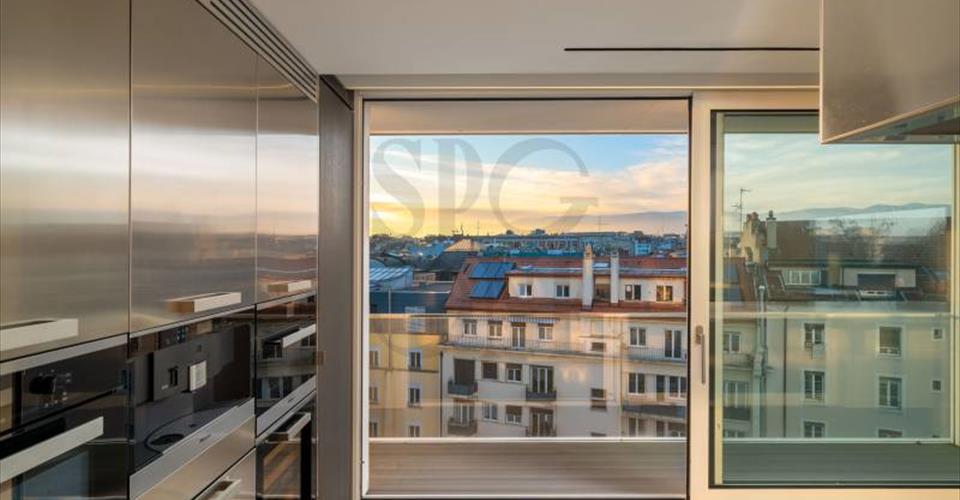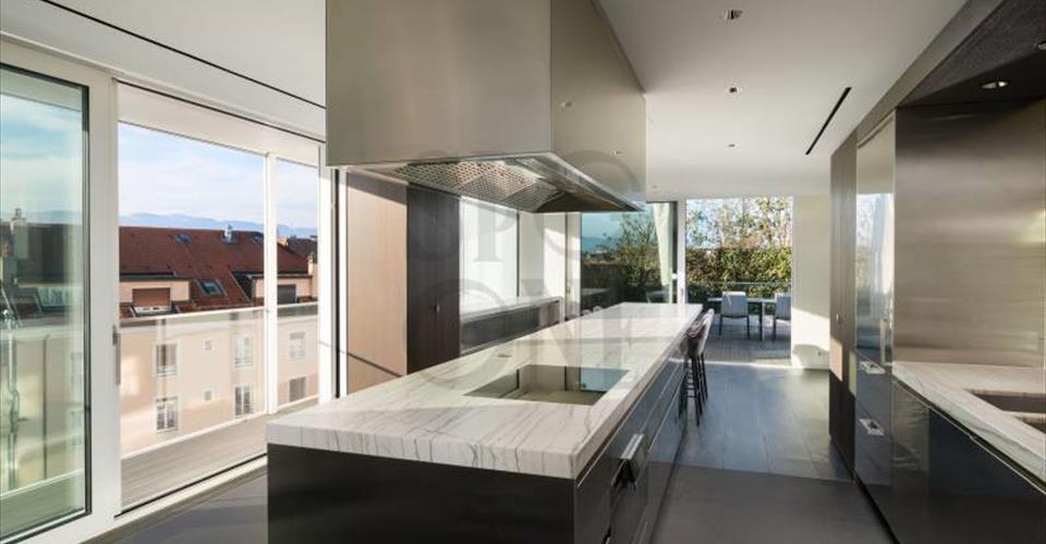 Triplex d’exception avec vue lac – Genève Centre-ville En plein cœur du centre-ville, ce triplex rare offre volumes généreux, finitions haut de gamme et vues spectaculaires sur le lac, les Alpes et le Jura. Double séjour, salle à manger, cuisine ouverte équipée, suite parentale avec dressing, 4 chambres en suite, rangements, buanderie, cave. Terrasse verdoyante, rooftop panoramique, box double et place privative. Un bien unique alliant élégance, confort et emplacement prestigieux.