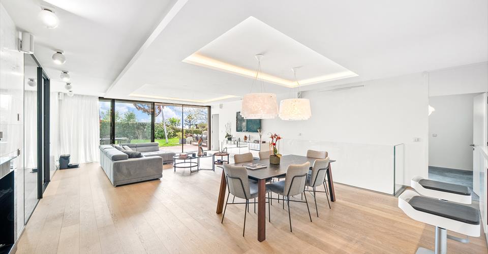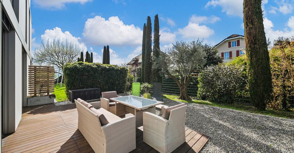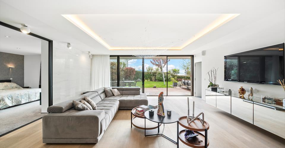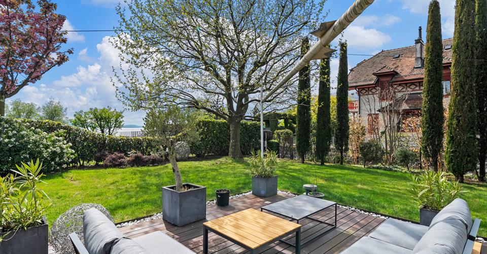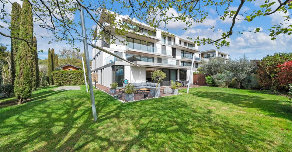 A mi-chemin entre Pully et Lutry, ce superbe appartement en duplex se situe dans une résidence élégante, en seconde ligne du lac. Il bénéficie d’un beau jardin avec accès direct au Léman et d’un emplacement privilégié, à quelques pas du port de Paudex, des commerces, des transports publics et des écoles internationales. L’appartement séduit par son style contemporain, ses volumes généreux, ses finitions soignées et ses larges baies vitrées qui s’ouvrent sur le jardin invitant à profiter pleinement de ce cadre exceptionnel. Réparti sur deux niveaux, ce 11 pièces offre une surface utile de 304 m². Il comprend 5 chambres et 5 salles de bains, dont un deux pièces indépendant, idéal pour accueillir en toute autonomie. A l’extérieur, une grande terrasse de 77m² et un jardin paysagé de 447m² avec accès sécurisé au lac prolongent l’espace de vie. Ce bien d’exception dispose d’une salle de sport, d’une cave à vin, d’un espace de rangement ainsi que d’un garage box pour quatre véhicules. Deux places extérieures complètent l’offre. Tous les stationnements sont proposés en supplément du prix de vente. La reprise d’une place d’amarrage dans port de Paudex, peut-être envisagée.