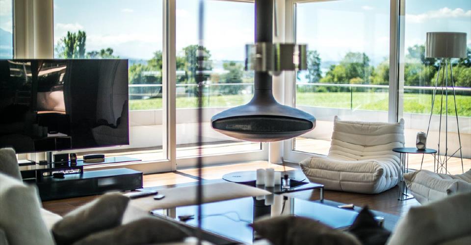 Bienvenue dans cette somptueuse propriété située dans la charmante commune de Coppet, à quelques pas seulement du lac et du village. Ce magnifique triplex avec jardin offre une vue imprenable sur les montagnes et le lac Léman, et représente un véritable havre de paix dans un cadre idyllique. D’une superficie d’environ 760 m2 utiles, plus de 310 m2 de terrasses et environ 2000 m2 de jardin, cet objet unique propose des prestations de luxe et de grand standing. Au rez-de-jardin, vous trouverez une entrée spacieuse, un grand salon, une salle à manger et une cuisine équipée avec îlot central, toutes ces pièces donnant accès directement au jardin privé. Un WC visiteurs ainsi qu’un studio pour le personnel complètent ce niveau. L’étage supérieur quant à lui, propose trois chambres avec salle-de-bains privatives ainsi qu’une superbe master bedroom avec dressing, salle de bain et salle-de-douche. Les chambres disposent toutes d’un accès aux différentes terrasses de l’étage, offrant ainsi une vue imprenable sur les environs. Enfin, l’étage toiture est constitué d’un grand salon avec coin bureau, donnant sur une superbe terrasse solarium équipée d’une cuisine d’été et d’un jacuzzi, offrant une vue panoramique sur les montagnes et le lac. Le sous-sol de cette propriété d’exception est également aménagé avec goût, proposant une belle salle de cinéma, un SPA constitué d’une piscine intérieure, d’une salle de gym, d’un sauna et d’un hammam. Plusieurs pièces techniques, une buanderie ainsi qu’un garage double complètent ce niveau. Vous apprécierez également l’ascenseur privé et le système d’alarme avec vidéo surveillance, garantissant ainsi votre sécurité et votre tranquillité. Ce magnifique triplex est un objet spacieux, agréable et pratique à la fois, idéal pour une famille nombreuse Ne manquez pas l’occasion de découvrir cettepropriété unique en son genre, qui saura vous charmer par son élégance et son raffinement.