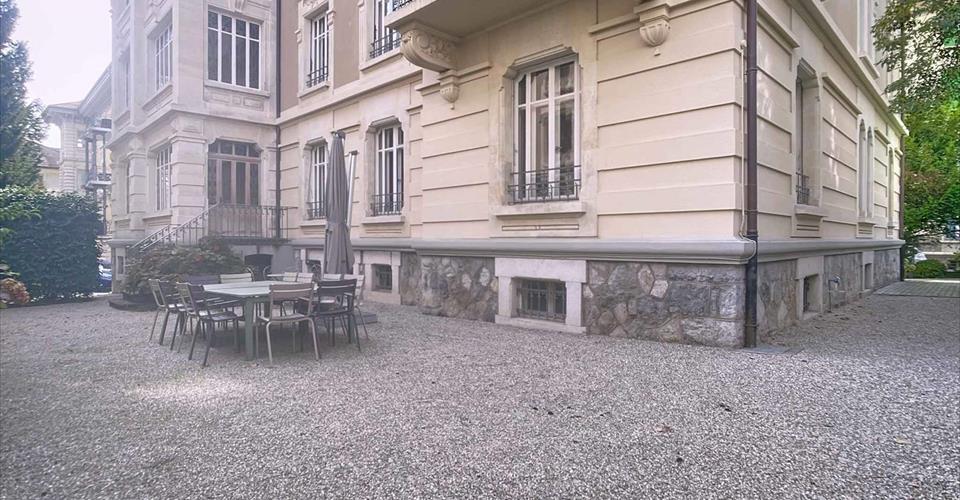 À deux pas du Musée Olympique, au cœur du quartier prisé de Florimont, la « Villa Olivier » s’inscrit avec prestance entre l’Avenue Juste-Olivier et l’Avenue des Alpes. Édifié en 1905 dans un style néobaroque italien, cet immeuble de caractère, composé de quatre lots PPE, témoigne d’une architecture soignée qui a su préserver son cachet d’origine au fil du temps. Les deux appartements proposés à la vente se situent au rez supérieur et au premier étage. Actuellement reliés par un escalier intérieur, ils déploient ensemble près de 540 m² habitables et représentent une opportunité rare en ville. La cession séparée des lots demeure toutefois possible. Au rez supérieur, un appartement de 7,5 pièces s’ouvre sur environ 270 m² habitables. Ses volumes généreux, ses plafonds décorés, ses parquets d’époque et ses cheminées instaurent une atmosphère intemporelle, tandis que l’accès direct au jardin lui confère un charme supplémentaire. Un galetas aux combles ainsi qu’une cave viennent compléter l’ensemble. À l’étage, un second appartement de 8,5 pièces déploie également environ 270 m². Prolongé par trois balcons totalisant 16,5 m², il se distingue par ses hauteurs sous plafond, ses vitraux de véranda et la finesse de ses finitions anciennes. Lui aussi bénéficie d’un galetas et d’une cave. Deux places de parking extérieures viennent s’y ajouter, conjuguant le charme patrimonial de la bâtisse et la praticité d’une situation privilégiée au cœur de Lausanne.