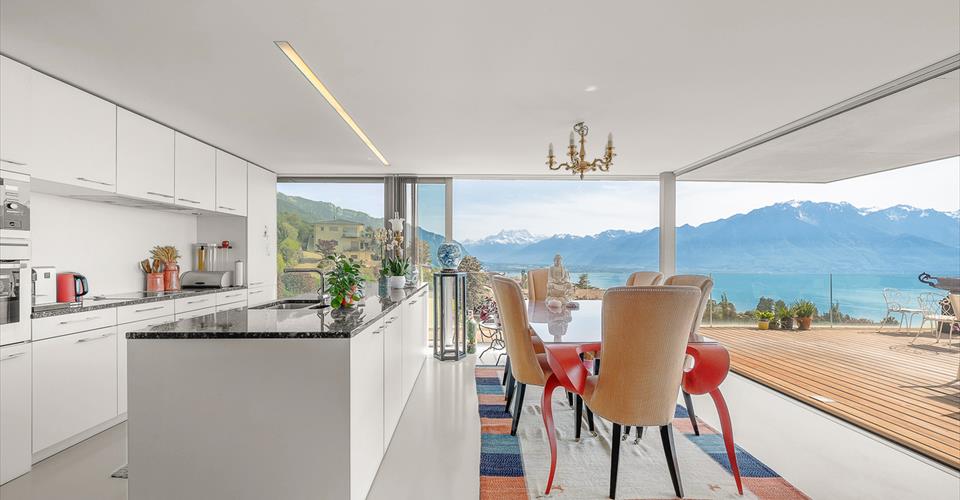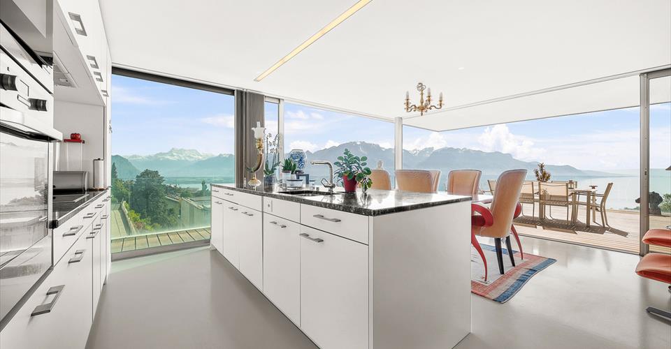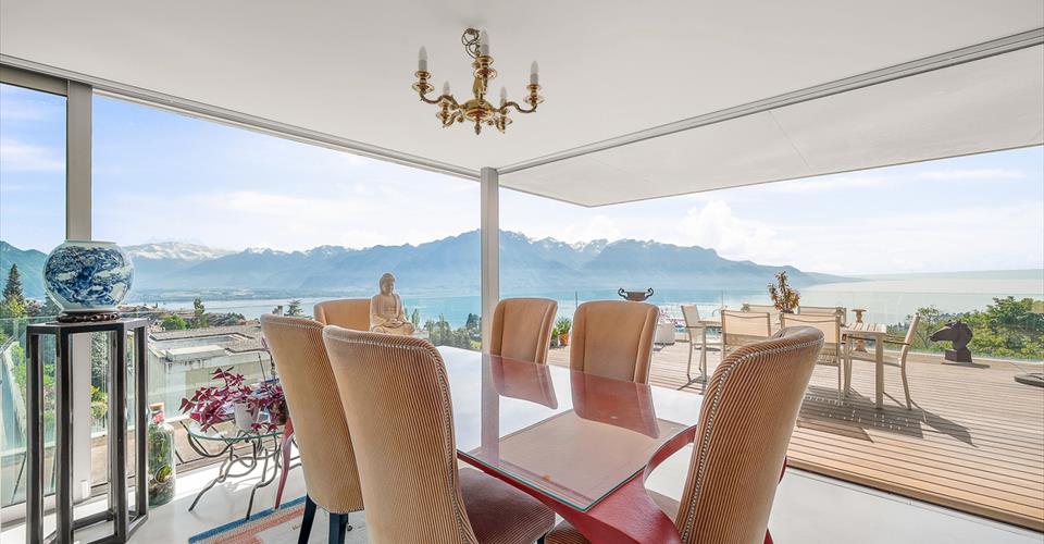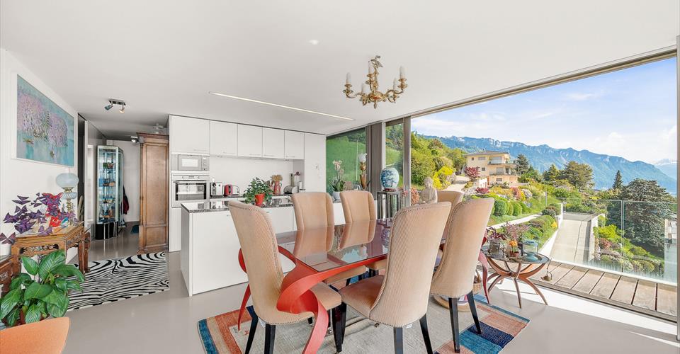 Venez découvrir ce splendide appartement situé dans les hauts de la ville réputée de Montreux et ses prestigieux quais. Son emplacement au cœur d’un environnement calme et résidentiel est particulièrement prisé pour ceux à la recherche de quiétude, à deux pas des commodités! Occupant l’entier du 4ème et dernier étage d’une luxueuse résidence contemporaine composée de deux bâtiments de 4 logements chacun construits en 2010, il offre un splendide et unique panorama sur le Léman et profite d’une luminosité sans pareille grâce à ses grandes baies vitrées et son orientation Sud-Ouest. Ce magnifique appartement de 2.5 pièces profite d’une surface pondérée de 118 m2. L’aménagement intérieur, les volumes généreux et la qualité des finitions se réunissent pour produire une réussite exceptionnelle. La réalisation est épurée et la vue.
