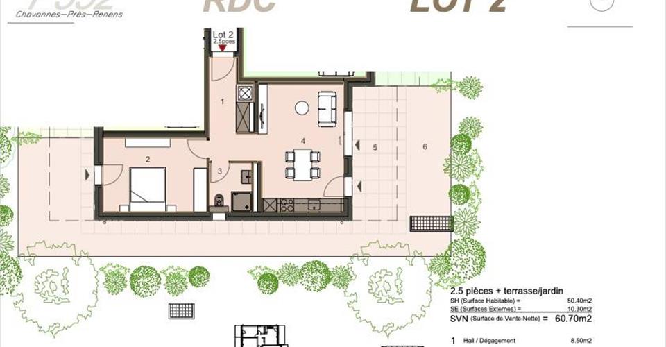 Cet immeuble est en cours de construction, la fin des travaux est prévue pour fin mars 2026. Très joli appartement 2,5 pces traversant au rez avec jardin Est/Ouest, séjour avec cuisine ouverte, chambre, salle d’eau avec douche et espace buanderie. La Résidence « Les Jardins de Chavannes » est une nouvelle réalisation située à l’avenue de la gare 67 à 1022 Chavannes-près-Renens. Cette construction sera composée de 22 appartements qui va du studio au 2,5 pces avec des orientations à l’Est, Ouest et Sud. Tous les appartements auront jardin/terrasse au rez-de-chaussée, balcon aux étages et grande terrasse en attique. Un soin particulier sera réservé aux aménagements extérieurs avec notamment la plantation d’un grand Magnolia, un Cèdre, trois Erables et 3 Amélanchiers. Le chauffage sera produit par une pompe à chaleur géothermique et panneaux photovoltaïques seront posés sur le toit. La situation est idéale, à 1km de l’autoroute, à 11mn à pied de la gare de Renens, 11 mn à pied de l’Université, à 9mn à pied du métro, à côté de la nouvelle Migros, à côté de la station de bus n° 31 qui se rend à la gare de Renens, à l’université et à St-Sulpice. Des places de parc sont disponibles dans le parking souterrain au prix de CHF 40’000.- en plus du prix de vente. Renseignement + visite : M. Cappella