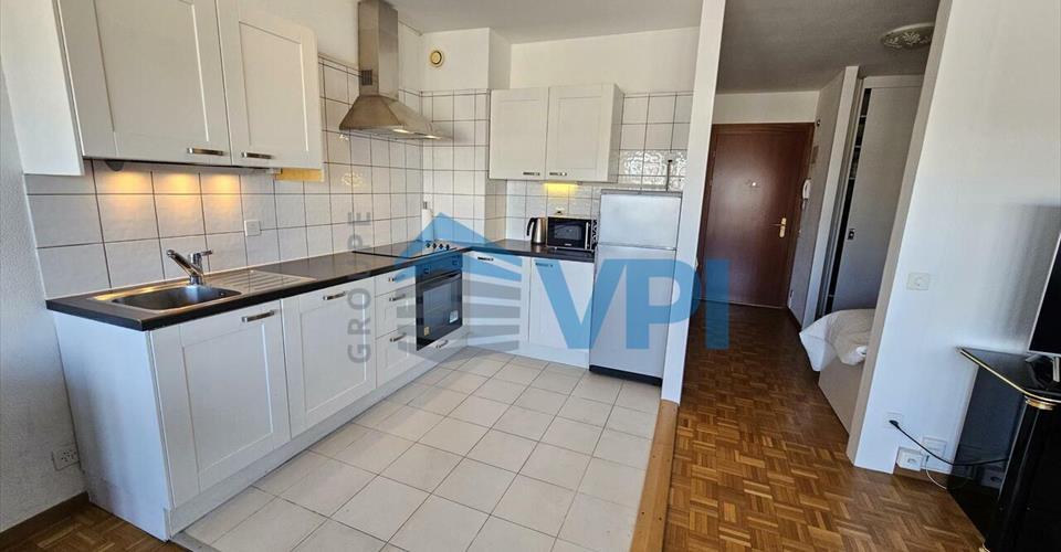 Situé au 8ème étage d’un immeuble de standing, ce superbe 2,5 offre un cadre de vie exceptionnel avec un jardin privatif, deux piscines extérieures et deux piscines intérieures accessibles aux résidents. Baigné de lumière naturelle grâce à une large baie vitrée, cet espace chaleureux et fonctionnel se compose de : – Hall d’entrée avec armoires murales – Spacieuse cuisine ouverte entièrement agencée équipée – Pièce de vie lumineuse – Coin chambre avec grand placard – Salle de bains / WC avec machine à laver Accès aux places de parking extérieurs