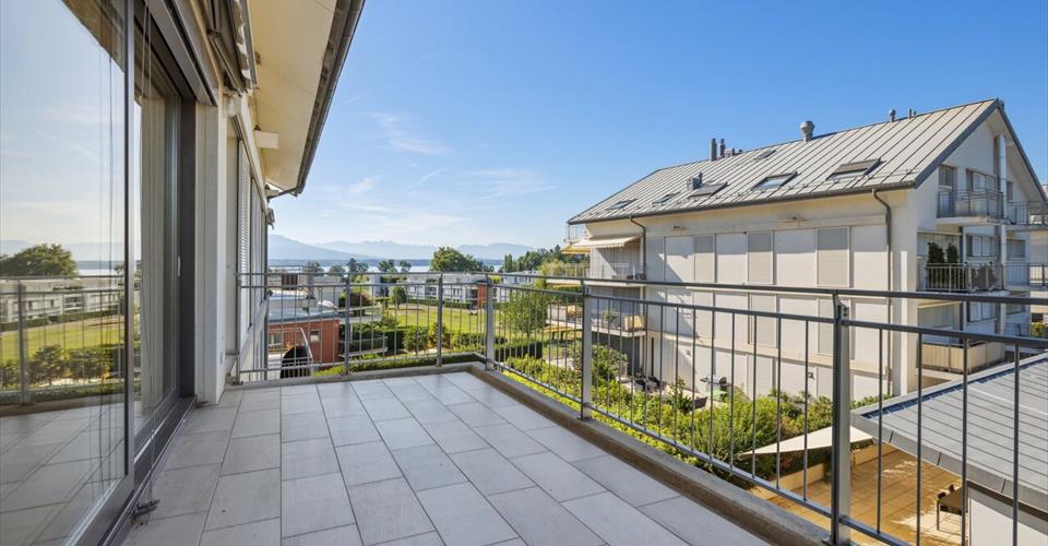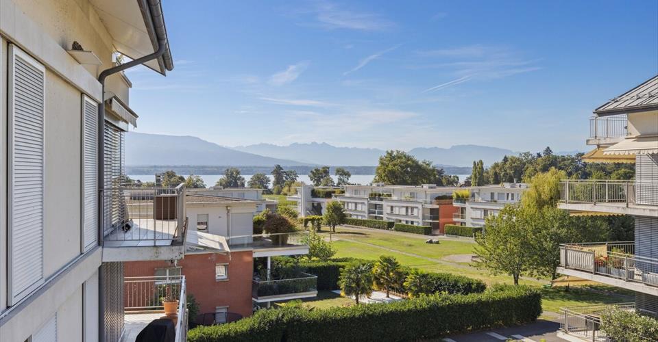 Idéalement situé sur la rive vaudoise du lac Léman, entre Genève et Nyon, Coppet est un charmant bourg historique qui séduit par son cadre de vie unique. Réputé pour son atmosphère paisible et son patrimoine architectural remarquable, le village allie tradition et modernité. Son cœur médiéval, dominé par le célèbre Château de Coppet, ancienne demeure de Madame de Staël, offre des ruelles pittoresques bordées de maisons anciennes, de cafés et de petites boutiques. Le port, ses quais fleuris et ses vues exceptionnelles sur le lac et le Mont-Blanc confèrent au lieu une douceur de vivre incomparable. Grâce à sa proximité avec Genève (15 minutes en train, gare de Coppet accessible à pied), Coppet bénéficie d’une situation privilégiée pour les familles, les actifs et les amoureux de la nature. Les habitants profitent de nombreuses infrastructures, d’écoles de qualité, de restaurants, de médecins ainsi que d’un environnement préservé mêlant lac, vignes et collines verdoyantes. Véritable joyau de la Côte vaudoise, Coppet offre une qualité de vie rare, entre patrimoine, tranquillité et dynamisme. Résidence prisée – Domaine des Perrières Situé au 3ème étage, ce charmant appartement offre des espaces bien agencés et un confort optimal : – Hall d’entrée avec placards intégrés – Cuisine équipée ouverte sur un agréable séjour – Salon lumineux donnant accès à un grand balcon – Salle de bains avec colonne lave-linge/sèche-linge – Chambre à coucher avec dressing et coffre-fort intégré Annexes : – Grande cave – Casier à vin privatif dans une cave commune climatisée – Box fermé avec porte automatique