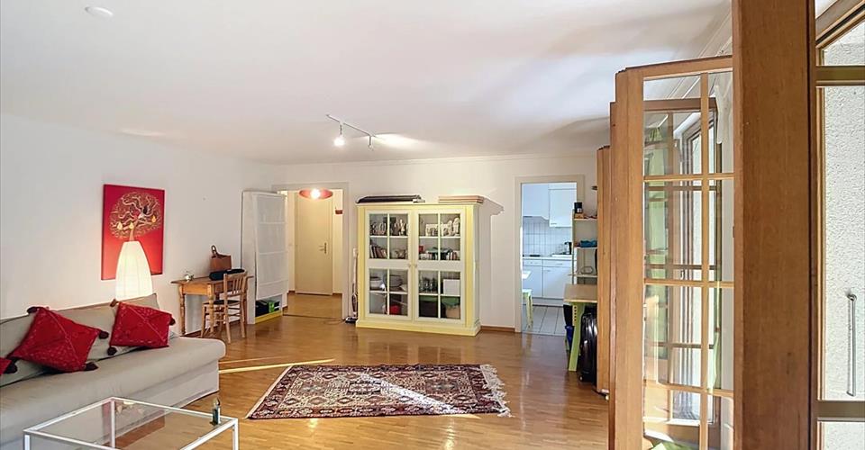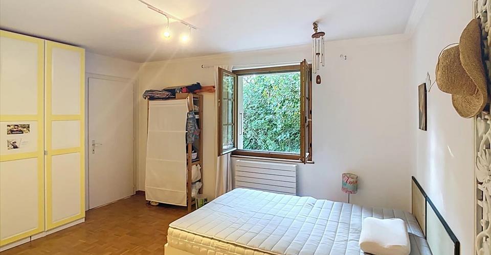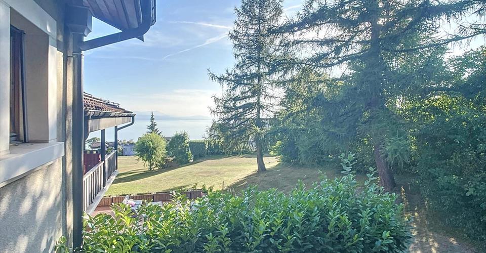 Hors de toute nuisance, dans un magnifique cadre de verdure, ce spacieux appartement de 2,5 pièces profite d’une belle vue sur le lac depuis son jardin privatif. Érigée en 1993, cette copropriété dispose d’un terrain de plus de 15’000 m2, elle est composée de 5 petits bâtiments et d’un parking souterrain. Orienté Ouest, en bordure d’un bosquet, cet appartement dispose de 70m2 habitables, d’un balcon/terrasse de 13m2 donnant accès au jardin privatif de 77 m2. Sa distribution est plaisante : hall d’entrée avec armoire murale, WC invités, spacieux séjour de 44,8 m2, cuisine semi-fermée, une chambre de 15,8 m2 avec sa salle de bains/double lavabo attenante. Une cave de 6,3 m2 et deux places de parc intérieures (en sus 2 x CHF 35’000.-) complètent ce charmant appartement. Cet appartement nécessitera un rafraîchissement. Libre de suite. La PPE prévoit des travaux énergétiques et de rénovations étalés jusqu’en 2055. Les charges seront augmentées d’env. CHF 50.-/mois, soit un total mensuel d’env. CHF 500.-.