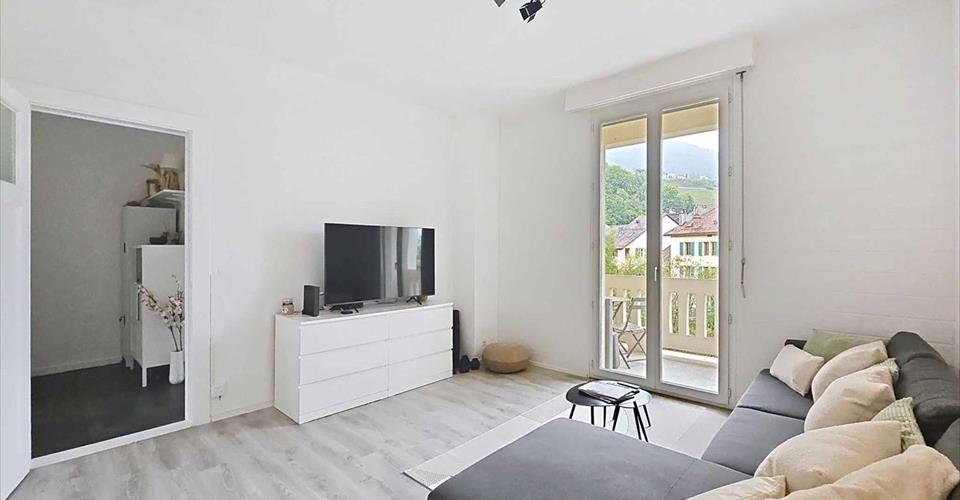 Exclusivité Cogestim Ce charmant appartement 2.5 pièces est situé dans la PPE « Le Ruisseau », une résidence de caractère idéalement positionnée dans les hauteurs du village de Clarens. Il profite d’un cadre paisible, entouré de verdure et d’une rivière, offrant un véritable havre de tranquillité. Entièrement rénové avec des matériaux de qualité, ce logement moderne offre un espace lumineux, confortable, et une atmosphère chaleureuse et cosy. Il dispose d’un balcon couvert qui offre une jolie vue sur le lac Léman, les montagnes, le château du Châtelard et son vignoble. L’appartement se compose d’une chambre à coucher, d’une cuisine habitable fermée entièrement agencée, d’une salle de bains avec WC, ainsi que d’un séjour lumineux donnant sur le balcon. Il est idéalement situé à proximité de toutes les commodités : gare, transports publics et commerces sont accessibles en quelques minutes à pied ou en voiture. Une place de parking en location ainsi qu’une cave complètent ce bien. L’appartement est actuellement loué, peut représenter une opportunité investisseur. L’appartement est disponible à la vente pour les non-résidents suisses (sous réserve d’une autorisation LFAIE).