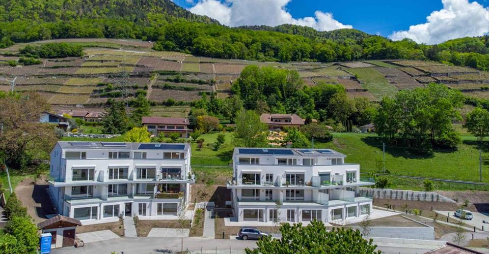 Spacieux et lumineux appartement de 2.5 pièces traversant situé dans la résidence« Les Terrasses du Chablais ». La Résidence « Les Terrasses du Chablais » propose 40 appartements répartis en 4 immeubles allant du studio au 4.5 pièces ainsi que 5 surfaces commerciales le tout desservi par un parking souterrain. Points forts : Ventilation double flux, stores électriques dans toutes les pièces sauf salles d’eau, colonne de lavage-séchage offerte. Il est composé comme suit : Hall d’entrée – Cuisine équipée ouverte sur le séjour – Séjour/salle à manger avec accès au balcon – Salle de douche WC/lavabo avec colonne de lavage-séchage – Une chambre avec accès à la terrasse – Grande terrasse de 39 m2 Sont également disponibles des appartements de 3 ½ et 4 ½ pièces ainsi que des surfaces commerciales de 69 m2 à 178 m2. Places de parc extérieures : CHF 15’000.- Places de parc intérieures : CHF 30’000.- Installation d’une borne de recharge électrique possible sur la place de parc Baignée par le soleil, la commune d’Ollon, 6ème du canton en termes de superficie, jouit d’un agréable microclimat. S’étendant du Rhône (alt. 391 m) au Chamossaire (alt. 2’112 m), son paysage est harmonieusement composé de terres agricoles, de vignes, de forêts, de pâturages, de cours d’eau, au milieu desquels 23 villages et hameaux se sont confortablement érigés. Ollon est réputée pour ses grands vins et Villars pour son superbe domaine skiable. Le village est desservi par le train AOMC (Aigle-Ollon-Monthey-Champéry) dont un arrêt se situe à quelques pas de la résidence. La desserte autoroutière quant à elle n’est éloignée que de 2 km. A quelques centaines de mètres se situent les établissements scolaires allant du jardin d’enfants au secondaire. REMARQUE : Cet appartement est actuellement loué