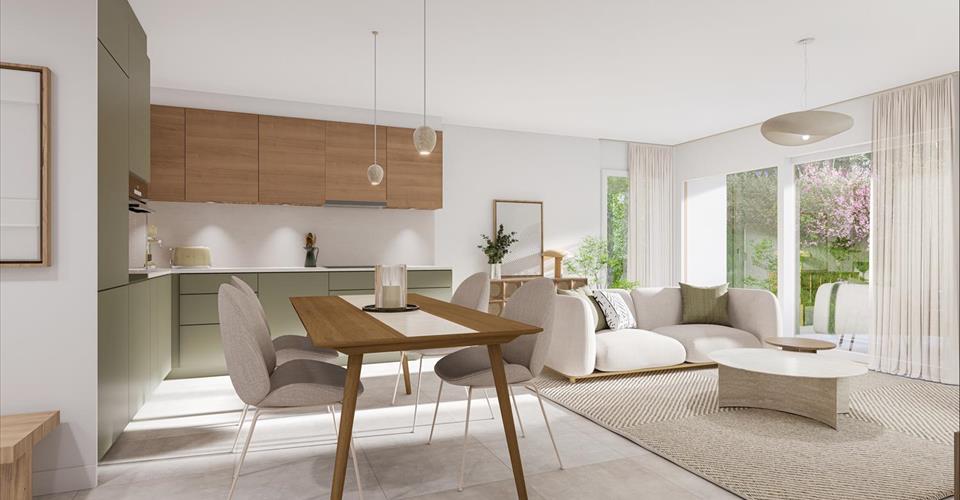 Situé au rez-de-chaussée du bâtiment A, cet appartement de 2.5 pièces offre une surface habitable de 48 m², complétée par une terrasse de 22 m² et un magnifique jardin privatif d’environ 60 m², véritable prolongement naturel de votre espace de vie. Pensé pour allier confort moderne et qualité de vie, le logement se distingue par sa luminosité, ses volumes bien agencés et ses finitions personnalisables. Grâce à ses grandes baies vitrées orientées sud, vous bénéficiez d’un cadre de vie lumineux et apaisant tout au long de la journée. Distribution : Spacieux séjour/cuisine de 26 m² ouvert sur l’extérieur 1 chambre (13 m²) 1 salle de bain Hall d’entrée avec rangements Terrasse de 22 m² et jardin de 60 m² Atouts : Accès direct au jardin depuis le séjour Finitions au choix avec des budgets généreux (cuisine équipée en Miele et plan de travail en granit) Cave privative incluse Place de parc extérieure, équipée d’arrivée électrique, disponible en sus Une qualité de vie rare, entre calme résidentiel, nature, et proximité immédiate des commerces et du coeur d’Oron