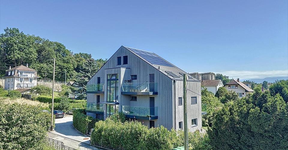 Superbe appartement traversant de 2,5 pièces en duplex, avec 2 grands balcons, au dernier étage d’un petit immeuble résidentiel construit en 2019 de seulement 6 lots. Ce charmant appartement, réparti sur deux niveaux, vous séduira par son agencement optimisé et son volume intérieur généreux. Avec une surface d’environ 59 m², dont une mezzanine à l’étage, cet appartement offre un cadre de vie à la fois cosy et fonctionnel. Vous profiterez de deux balcons totalisant une surface de 14,5 m². L’espace se compose, au niveau inférieur, d’une lumineuse salle à manger avec cuisine ouverte et bar, d’une chambre à coucher et d’une salle de bains totalement équipée. À l’étage se situe le séjour aménagé sous la toiture. Une belle cave privative et une place de parc extérieure complètent ce bien d’exception. Localisation privilégiée Situé aux portes de Lausanne, à seulement 12 minutes à pied du centre de Prilly, cet appartement bénéficie d’un environnement calme et reposant. Vous êtes à deux pas de la piscine de Prilly, à 50 mètres du club de tennis, ainsi qu’à seulement 5 minutes de la station du LEB, facilitant vos déplacements.