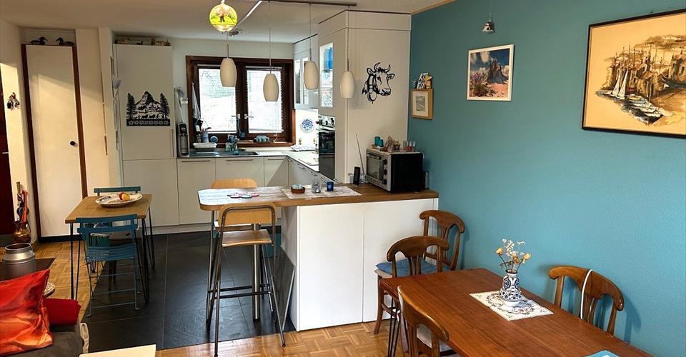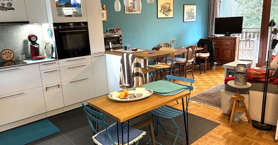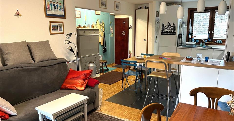 Joli appartement meublé partiellement renové – 2,5 pièces – 51 m2 Situé aux Chesaux-Dessus G – 1er étage – quartier calme et ensoleillé Hall d’entrée avec placards Magnifique cuisine neuve ouverte toute équipée Salon-salle à manger lumineux donnant sur un balcon de 18 m2 Chambre à coucher Salle de bains/lavabo/WC Place de parc extérieure Cave et local à skis Buanderie commune Charges PPE: CHF 570.-/ mois inclus charges extraordinaires pour la réfection du toit et pose de panneaux solaires