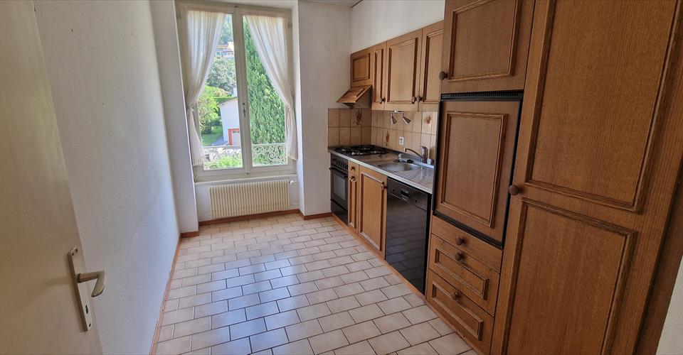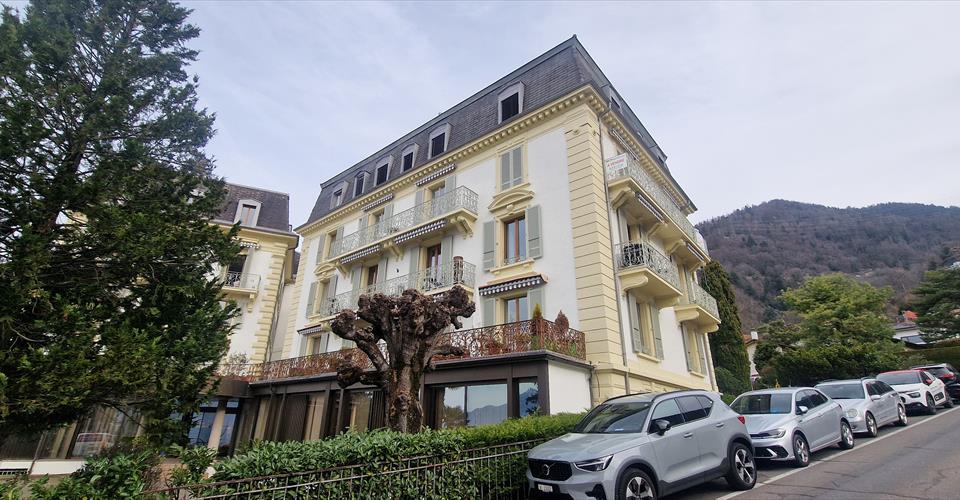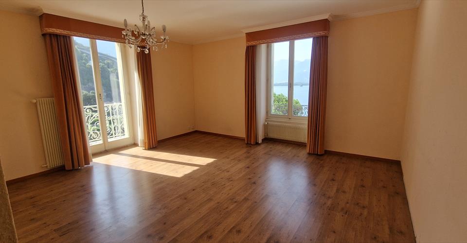 Appartement, lumineux, à Veytaux, sis dans un ancien hôtel, au 5e étage, avec ascenseur. Il se compose de: •un hall d’entrée •un wc séparé •une cuisine •une chambre à coucher avec salle de bain attenante •un grand salon avec balcon. Magnifique vue sur le lac et le château de Chillon et les Dents-du-Midi. L’appartement est très lumineux, avec du cachet, idéal pour un investisseur ou comme secondaire