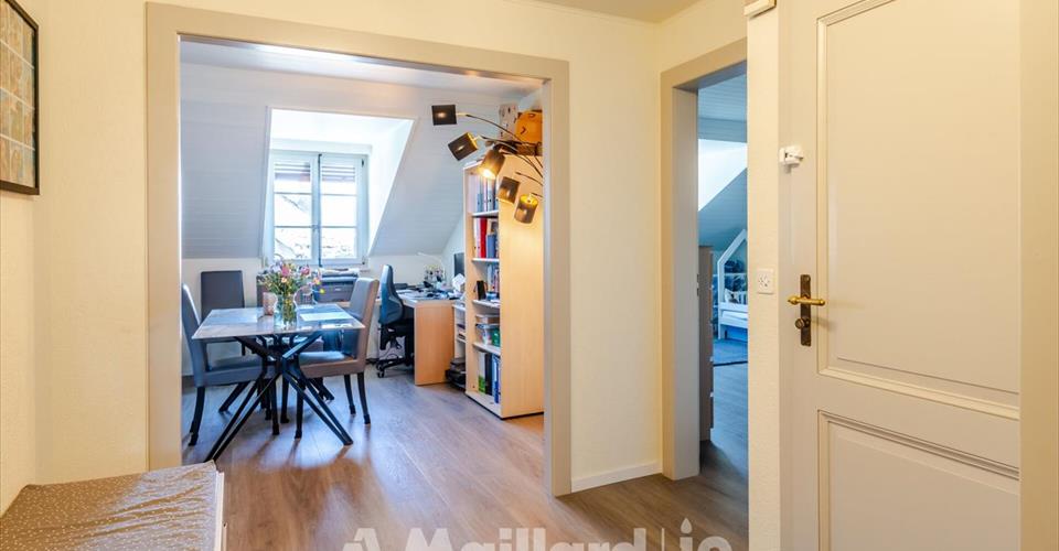 Charmant appartement de 2.5 pièces au coeur de Yens Maillard Immobilier vous propose en exclusivité ce bel appartement de 2.5 pièces, situé dans les combles d’un immeuble villageois au cachet certain, au centre du charmant bourg de Yens. Entièrement rénové en 2024 avec soin et en parfait état d’entretien, ce bien offre une ambiance chaleureuse et une belle qualité de vie : Distribution : Hall d’entrée avec rangements Spacieux séjour avec poêle Cuisine ouverte, entièrement équipée, s’intégrant harmonieusement à la pièce de vie Très grande chambre à coucher avec armoires intégrées Salle de douche avec bac à douche à l’italienne, fenêtre, lavabo et toilettes Vue dégagée et très agréable sur les toits du village de Yens et sur les Alpes. Une cave en annexe. Excellent état général, suite à une rénovation complète réalisée avec des matériaux de qualité. Un bien rare, alliant authenticité et modernité, Idéal pour un investisseur ou un futur propriétaire à la recherche d’un logement sans travaux à prévoir. Appartement : CHF 565’000.- Place de parc extérieure : CHF 15’000.- Prix total : CHF 580’000.- Yens Yens est une commune suisse du canton de Vaud, située dans le district de Morges. Accessibilité En voiture, Yens se situe à environ 10 minutes de l’autoroute A1 et à 26 minutes de Lausanne. Bus : Depuis décembre 2024, une nouvelle ligne de bus CarPostal, ligne 727 relie Yens-Lavigny- Etoy-Allaman-Aubonne-Lavigny une fois par heure. L’arrêt de bus se joint en 3 minutes depuis votre future résidence. Ce bus permet de rejoindre la gare de Yens en 5 minutes. La ligne de train R56 (exploitée par les MBC) relie Yens à Morges en environ 16 minutes. Deux trains par heure desservent cette liaison, permettant ainsi aux habitants de rejoindre facilement le centre-ville de Morges et les correspondances CFF (notamment vers Lausanne et Genève). Scolarité Les enfants domiciliés à Yens sont scolarisés dans des établissements publics rattachés à l’Établissement primaire et secondaire de Saint-Prex et environs (EPS Saint-Prex). Les élèves fréquentent l’école primaire de Yens, située directement dans le village. Ce bâtiment scolaire accueille les enfants dès la 3e année (3P), généralement vers l’âge de 6 ans, jusqu’à la 8e année (8P). L’école propose également des prestations d’accueil de midi ainsi qu’un encadrement pour les devoirs surveillés, en collaboration avec les services communaux et intercommunaux. À la fin du cycle primaire, les élèves poursuivent leur scolarité obligatoire au cycle secondaire I, qui se déroule à Saint-Prex ou à Villars-sous-Yens, selon les classes. Ces sites font partie de l’établissement régional EPS Saint-Prex. Les élèves y sont répartis selon les filières scolaires définies par leurs résultats (voie prégymnasiale, générale ou adaptée). Il existe plusieurs structures d’accueil pour les jeunes enfants à Yens, gérées par le Réseau d’accueil de jour Dame Tartine (AIRADT), une association intercommunale qui regroupe les communes de Yens, Denens, Lussy-sur-Morges et Villars-sous-Yens. Commodités Yens ne possède pas de grand supermarché, mais plusieurs commerces de proximité sont accessibles dans les villages voisins comme Lavigny ou Morges. Vous trouverez une boulangerie, une auberge communale, le domaine des Loveresses (vente de légumes, fruits), des salons de coiffure, institut de beauté, un cabinet médical. Vie sportive et loisirs Yens dispose d’un terrain dédié où les jeunes et les adultes peuvent pratiquer le football, le volley-ball ou d’autres sports collectifs. Ce lieu sert souvent de point de rencontre pour les clubs sportifs locaux. Plusieurs associations culturelles et sportives organisent des activités variées, notamment un club de gymnastique, une chorale ou un groupe de musique locale. Ces associations favorisent le lien social et l’animation du village. École de musique : Le village accueille un site de l’École de musique de la Fondation pour l’enseignement de la musique (FEM-VD), où les enfants et adultes peuvent suivre des cours d’instruments, de chant ou de solfège. Yens en bref District : Morges Sobriquet : Les Fumas Habitants : 1’502 (au 31.12.2024) Altitude : 580 m Superficie : 9,51km² Taux d’impôt % : 71.5 https://www.yens.ch/ Chauffage Chauffage au gaz – Diffusion par le sol – Chaudière de 2024 Rénovation L’appartement a été entièrement rénové en 2024. Cuisine, salle de douche, revêtement de sol, peintures. L’immeuble a été entièrement rénové en 2012. Communs Buanderie collective pour les 3 appartements équipée d’une machine à laver et sécher L’actuelle cave à vins sera compartimentée et aménagée avec des claires-voies pour avoir des rangement distincts pour chaque appartement OIBT Contrôle électrique des 3 appartements et des communs effectué en 2013. PPE – Charges Acte constitutif de la PPE et budget des charges en cours de constitution Loyer L’appartement est vendu libre de tout bail et d’occupants. Fin du bail 15.07.2025