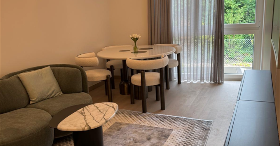 Situé au 1er étage d’une nouvelle résidence à Vésenaz ce bel appartement de 2.5 pièces d’environ 60 m² offre un cadre de vie agréable, dans la commune recherchée de Collonge-Bellerive. Il bénéficie d’un emplacement privilégié, à proximité immédiate du lac, des commerces, des restaurants et des transports publics, assurant une bonne accessibilité. L’appartement se compose comme suit : – Hall d’entrée avec rangements intégrés – Cuisine ouverte, équipée, avec machine à laver intégrée – Salon lumineux et spacieux, meublé avec goût – Chambre avec rangements intégrés – Salle d’eau avec douche à l’italienne et WC Un box double en sous-sol est disponible en option. La résidence est sécurisée, avec vidéosurveillance et accès contrôlé. Parking visiteurs et local à vélos sont également à disposition. Conditions : – Loyer : CHF 4’100.-/mois charges comprises (eau chaude, chauffage, électricité, internet) – Box double (optionnel) : CHF 490.-/mois – Disponibilité : immédiate