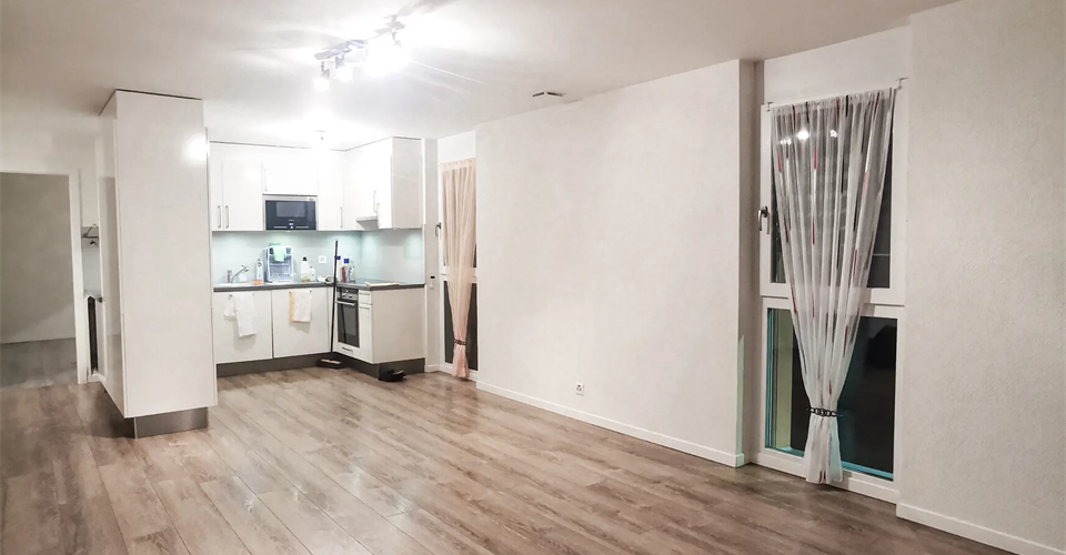 Appartement de 2.5 pièces au 1er étage ayant: – Une cuisine ouverte sur salle à manger et salon – Un balcom – Une salle de douche / WC – Une chambre Une buanderie à disposition Immeuble avec ascenseur
