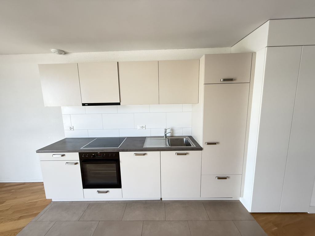 Dans un immeuble moderne, avec ascenseur, vous bénéficierez d’un emplacement de choix à deux pas de la gare CFF et des commerces tels que Migros et Aldi.