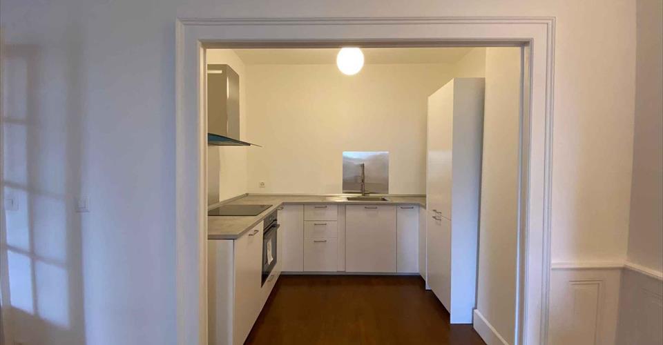 Magnifique appartement de 2,5 pièces au 2ème étage, avec hauts plafonds et cachet. Il est donne côté cour au calme Il offre : double hall d’entrée, vaste séjour avec cheminée décorative et cuisine ouverte équipée, une chambre, salle de bains/wc avec emplacement pour le lave-linge. Atouts : – En plein cœur de la Vieille-Ville – Environ 90 m² – Immeuble sécurisé (digicode) Charges CHF 200.–/mois (chauffage), eau chaude individuelle Sans ascenseur, pas de cave.