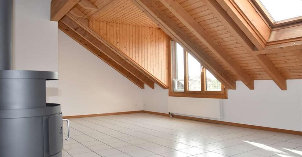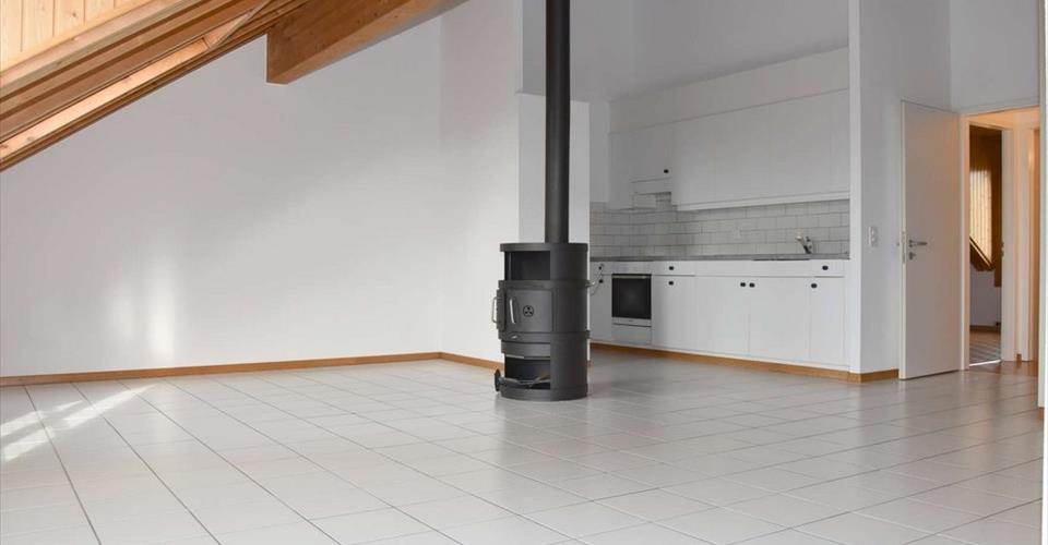 Venez visiter ce bel appartement de caractère qui se distribue autour d un somptueux séjour avec cachet bénéficiant d’une hauteur sous plafond maximale d’env. 3.50m et dispose d un poêle. Ce chaleureux logement de 2 pièces pour 72 m2 est aménagé sous combles. Situé à proximité immédiate des commerces, de la jonction autoroutière et du bus, ce logement serait idéal pour une personne seule ou un jeune couple. Il se compose comme suit – 1 hall d entrée avec armoires murales, – 1 vaste séjour avec dégagement et poêle, – 1 cuisine agencée partiellement ouverte, – 1 petit hall de distribution avec armoires murales, – 1 chambre à coucher avec armoires encastrées, – 1 salle de bains lavabo, – 1 WC séparé, – 1 cave. BAIL DE DUREE DETERMINEE DE 5 ANS. POSSIBILITES DE RESILIATION PAR LE LOCATAIRE PENDANT LA DUREE FIXE. Disponible de suite ou à convenir. Seuls les dossiers complets seront pris en considération, soit : – formulaire d’inscription dûment rempli (disponible sur notre site internet) – attestation originale de l’Office des Poursuites récente (max. 3 mois) – dernières fiches de salaire – copie de pièce d’identité ou du permis de séjour (B ou C)