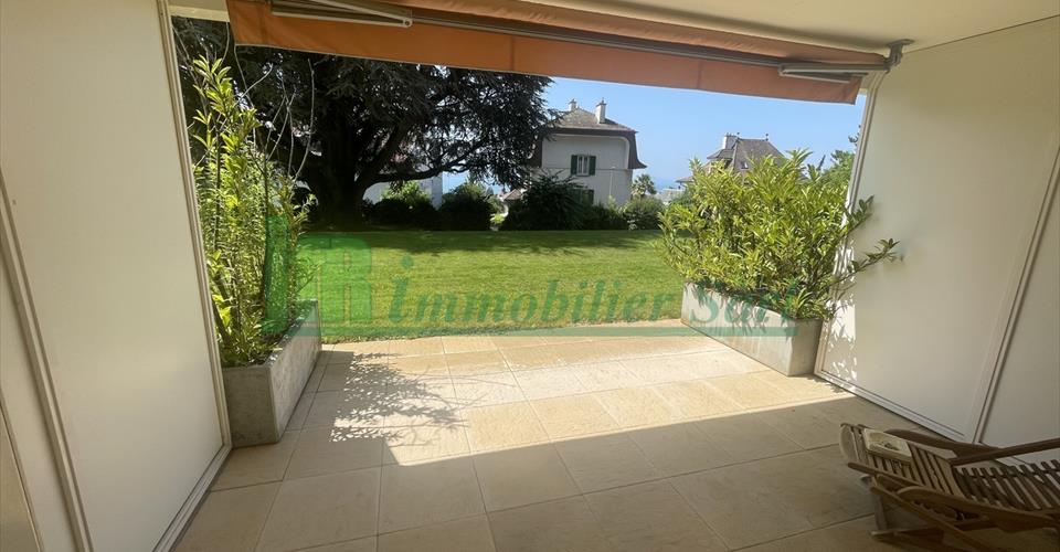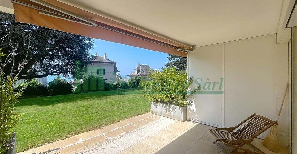 Appartement de 2,5 pièces avec terrasse-jardin et vue sur le lac à LOUER à Pully Situé dans un immeuble construit en 1995, cet appartement de 2.5 pièces offre un cadre de vie calme et paisible. Terrasse-jardin avec vue sur le lac. Description de l’appartement – Entrée. – Hall de distribution. – Cuisine agencée, ouverte sur le séjour. – Salle à manger et salon avec accès sur terrasse-jardin. – Réduit. – Salle de bains avec baignoire et douche, WC et lavabo. – Chambre à coucher. L’appartement bénéficie d’une lumière naturelle douce tout au long de la journée, parfaite pour une ambiance agréable et tempérée en toute saison. Vue sur le lac depuis la terrasse-jardin. Place de parc intérieure. Le lave-vaisselle sera changé et la peinture sera complètement refaite.