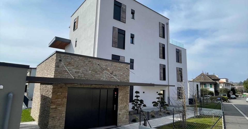 Situé dans un petit immeuble neuf de 5 appartements, magnifique logement d’une surface habitable de près de 50 m2 et composé de la manière suivante: – Hall d’entrée menant sur une pièce à vivre avec cuisine ouverte sur le séjour/salle à manger. – Cuisine entièrement équipée avec un lave-vaisselle – Chambre avec accès au balcon ainsi qu’une salle de douche attenante – Colonne de lavage (machine à laver et sécher dans l’appartement) – Spacieuse terrasse d’environ 45 m2 – Cave – Place de parc intérieure Cet appartement est disponible dès le 15 décembre 2025 au prix de CHF 2’290.- + CHF 150.- de charges + CHF 200.- de place de parc, soit un total de CHF 2’640.- Des visites groupées ont été organisées les 16, 23 et 30 octobre 2025 de 19h00 à 20h00. Pour tout renseignement complémentaire, notre service location se tient à votre entière disposition par téléphone ou par courriel à l’adresse.