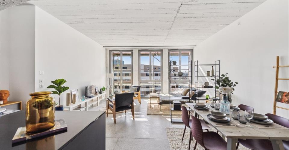 Nouvelle promotion « CREATIVE FACTORY », venez vivre l’expérience ! Toutes les informations sur www.creativefactory-renens.ch Atypique ? le mot parfait pour la définir. Nouvelle promotion qui saura attiser votre curiosité. Elle saura notamment vous séduire avec ses logements alliant modernité et confort. Leur aspect « industriel », avec des vestiges conservés du passé, les grandes et larges baies vitrées vous offrant une luminosité optimale, les balcons métalliques, les pièces « atelier » dont la plupart des logements sont munis. Ils sont tous orientés plein Sud et ont vue sur le parc arborisé du complexe. Ils se composent comme suit : – Hall dentrée – Cuisine agencée et équipée ouverte sur la pièce à vivre – Salle de bains/WC avec colonne lave-linge et sèche-linge – Balcon orienté plein Sud – Celliers dans certains logements et pour les autres, caves au sous-sol Les points forts : – Panneaux solaires avec revente de lélectricité produite aux locataires des logements pour leur propre consommation – Buanderie commune – Chauffage à distance – Local fitness avec salle de douches – 4 espaces de pause et de rencontres – 1 ascenseur et 1 monte-charge – 50 places de parc pour les logements, en sus à CHF 120.-/mois lunité – 200 places pour vélos, dans local fermé Le bâtiment Creative Factory se situe dans un quartier en plein essor, qui se distingue par sa situation idéale, proche de la gare et du futur tramway qui reliera Lausanne-Flon et la gare de Renens, ainsi que des commerces et des hautes écoles. Faites votre choix et contactez-nous pour plus dinformations ! Les photos présentées sont des images de synthèse et peuvent légèrement différer de l’original.