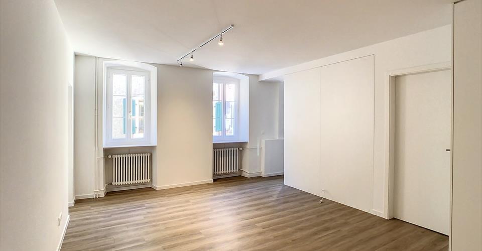 Magnifique appartement style “LOFT”, situé au 1er étage d’un immeuble en plein centre d’Aubonne. L’appartement a entièrement été rénové en 2020. Distribution : – Une cuisine équipée et ouverte – Un salon/séjour – Une chambre avec des placards encastrés – Une salle de bain comprenant une douche, un lavabo et une machine à laver – Un WC visiteurs avec lavabo Il est situé en plein centre du village d’Aubonne. Un arrêt de bus est à 100 mètres de l’appartement et permet de rejoindre la gare d’Allaman en 6 minutes. Disponible immédiatement. Appartement non meublé Pour information, ancien loyer pratiqué : 1’520.- CHARGES : 160.- TOTAL : 1’680.- Pour les visites I Matthieu DARCHEN