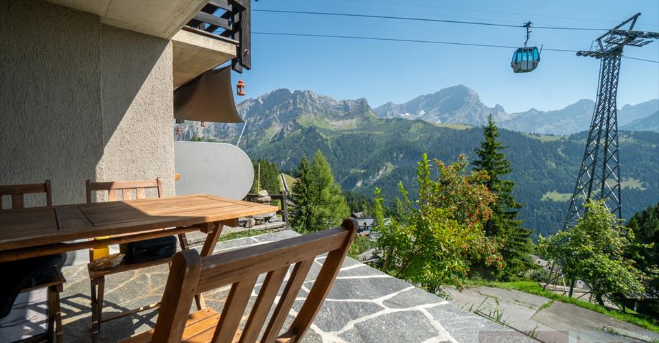 Imaginez vos journées d’hiver commencées par un café fumant sur la terrasse, face aux sommets enneigés, puis quelques pas suffisent pour rejoindre les pistes. En été, les randonnées partent directement depuis la porte, avec la vue imprenable sur les Dents du Midi et le Grand Muveran en toile de fond. Ici, tout respire le bois, la chaleur et la convivialité. Ce charmant 2 pièces de 40 m² habitables (60 m² utiles) propose un salon chaleureux avec cheminée, une cuisine ouverte équipée, une chambre confortable, une salle de bain avec baignoire et des WC séparés. Sa terrasse orientée sud est parfaite pour les repas en plein air. Emplacement privilégié : à seulement 150 m des pistes et sentiers. Points forts : Vue montagne à couper le souffle Accès pistes et randonnées en quelques minutes Intérieur bois et déco alpine Cheminée pour les soirées d’hiver Terrasse plein sud Un pied-à-terre idéal pour profiter de la montagne en famille ou entre amis.