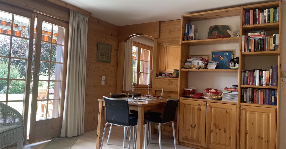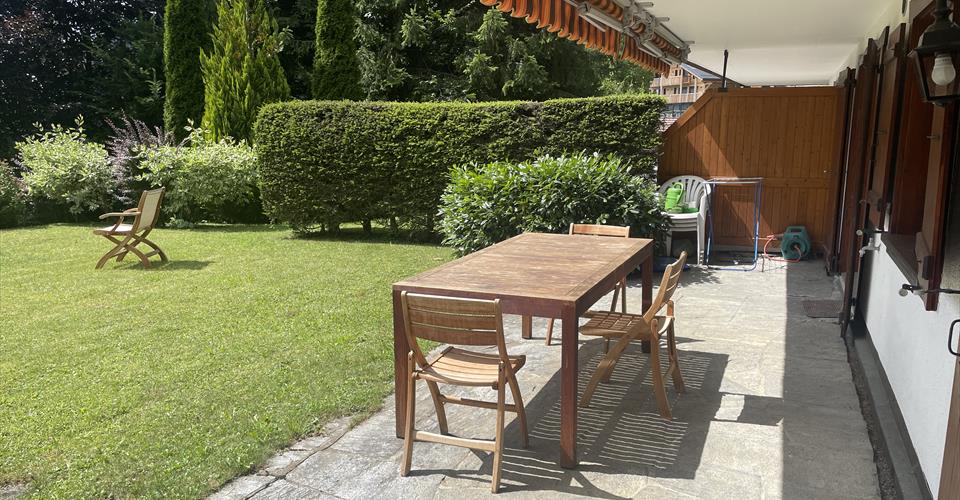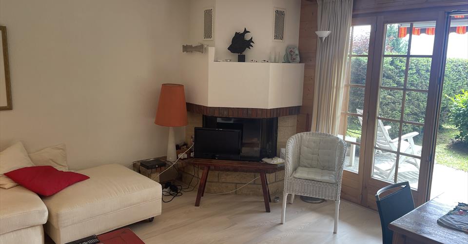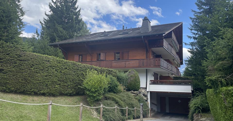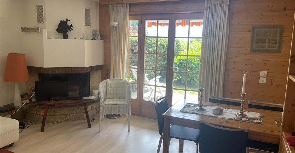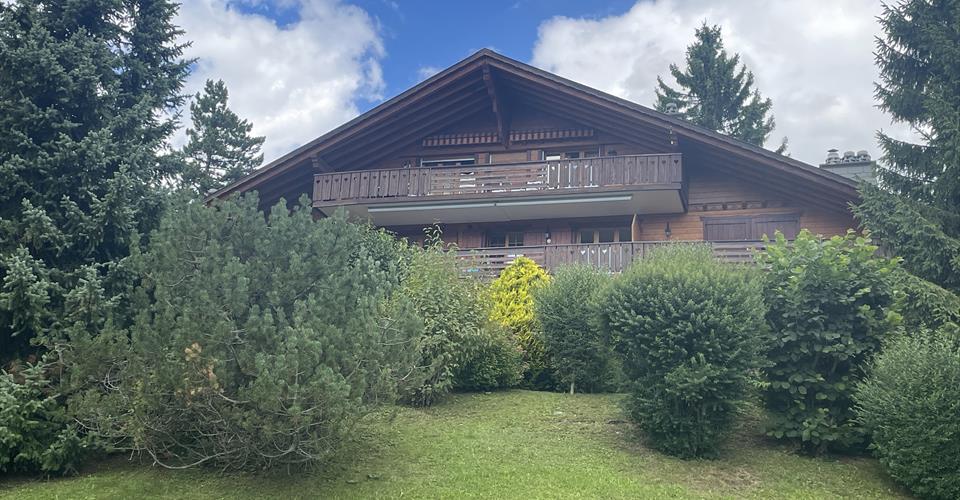 Description : entrée, living avec cheminée et coin repas, cuisine équipée, 1 chambre, 1 bains-WC, 1 WC visiteurs. Terrasse Sud d’environ 30 m2 et beau jardin d’environ 139 m2. A disposition : 1 place de parc dans le garage. Dépendances : sauna, cave, buanderie, local à skis. Divers : Bel et spacieux appartement avec beaucoup de cachet. Le chalet se trouve à proximité de la télécabine et à quelques minutes à pied du centre station. Accès facile en toute saison. Possibilité de racheter tout ou partie du mobilier