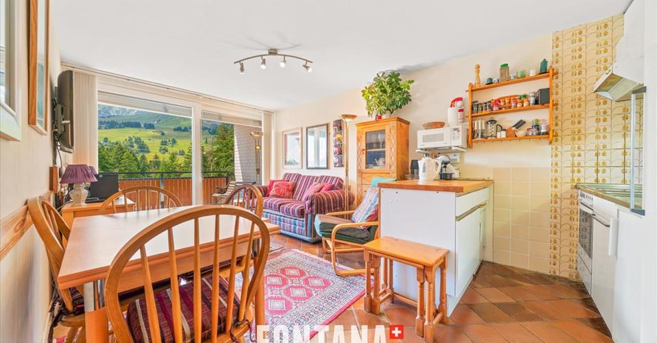 À vendre – Charmant appartement de 2 pièces aux Mosses. Au coeur du centre des Mosses, dans le canton de Vaud, cet appartement de 2 pièces de 40 m², situé au 2? étage avec ascenseur d’un bâtiment construit en 1970, offre un cadre de vie paisible, pratique et authentique, au plus près de la nature et des services. L’appartement comprend une pièce de vie bien agencée, intégrant une kitchenette, un coin repas et un petit salon, le tout ouvert sur un balcon offrant une vue dégagée sur les montagnes. Une chambre confortable, une salle de bains avec baignoire, une cave privative ainsi qu’un accès à la buanderie commune complètent ce bien. Le bâtiment est équipé d’un ascenseur, ce qui permet un accès facilité aux personnes à mobilité réduite. Un grand parking gratuit est à disposition juste à côté, ainsi qu’un arrêt de bus à 20 mètres de l’entrée, assurant une excellente connexion avec les transports publics. La situation de l’appartement est idéale : épicerie, office du tourisme, bancomat, tea-room, restaurant et magasin de sport se trouvent tous au pied de l’immeuble ou à quelques pas, ce qui garantit un confort de vie exceptionnel, été comme hiver. La station est en plein développement pour devenir une destination quatre saisons. À proximité directe de l’immeuble, un bassin naturel de baignade, écologique et non chloré, entouré de végétation filtrante, est en cours de réalisation. Ce projet offrira aux habitants un espace de détente durable pour les mois d’été et d’automne. À quelques kilomètres, le lac Lioson – perle alpine nichée dans un écrin de montagnes – offre un cadre idéal pour les amateurs de randonnée, de pêche et de paysages spectaculaires. Depuis le point de départ du sentier, il faut compter environ 40 minutes de marche pour atteindre ce joyau naturel. Ce bien rare représente une opportunité idéale comme résidence principale, pied-à-terre ou investissement locatif, dans une station dynamique et en plein renouveau. Appartement vendu entièrement meublé. Remarques Cet appartement a l’avantage d’être exclu de la Lex Weber et donne l’opportunité à toutes les personnes suisses ou étrangères de devenir propriétaire d’une résidence secondaire en montagne.