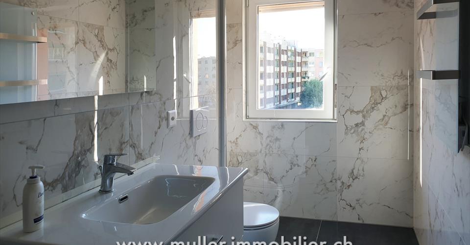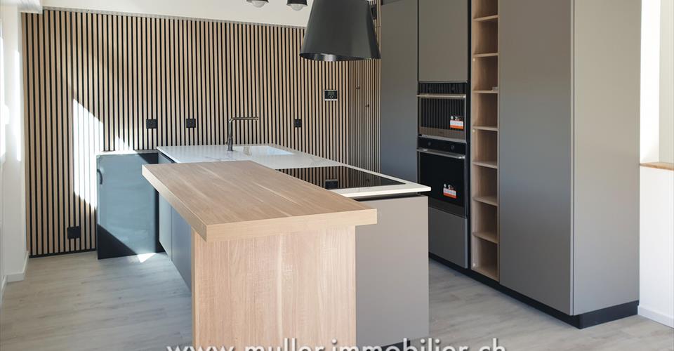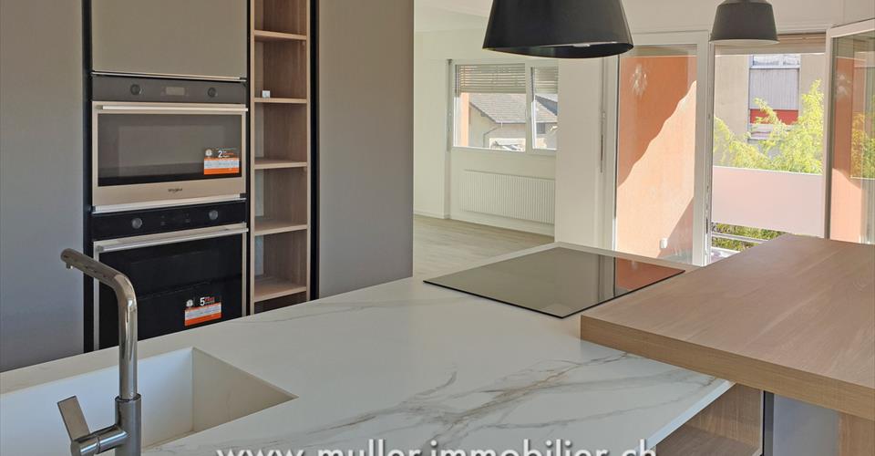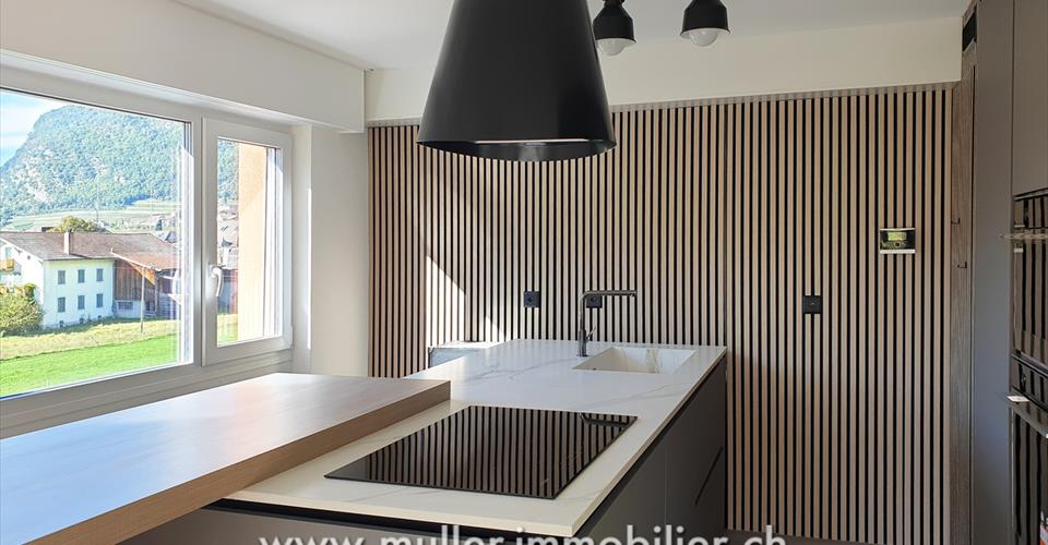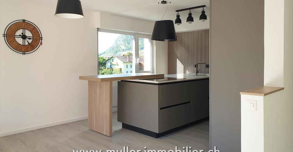 Un superbe appartement neuf de 3,5 pièces sur 87 m2 habitable à Aigle. Proche de toutes les commodités. Rénovation complète de l’appartement en 2025 avec des matériaux haut de gamme. Situé au 2ème étage, disposant d’une cave et d’un grenier. À 5 min de l’autoroute. CONFORT Situation : sud-ouest Quartier tranquille Vue sur les Alpes valaisannes Ascenseur Grenier Cave Balcon Chauffage privé au gaz Fenêtre triple vitrages Nombre de salles d’eau : 1 Place de parc : 1 extérieure comprise dans le prix Disponibilité : à convenir ACCÈS À 4 min à pied des commerces À 7 min à pied de l’école À 8 min à pied de la gare À 10 min à pied de la piscine À 5 min de l’autoroute 2ème ETAGE Hall d’entrée avec deux grandes armoires intégrées, un réduit, deux chambres spacieuses, une salle de bain avec machine à laver privée, cuisine ouverte sur pièce à vivre avec accès au balcon-loggia. COMBLE Galetas SOUS-SOL Cave EXTERIEUR Place de parc