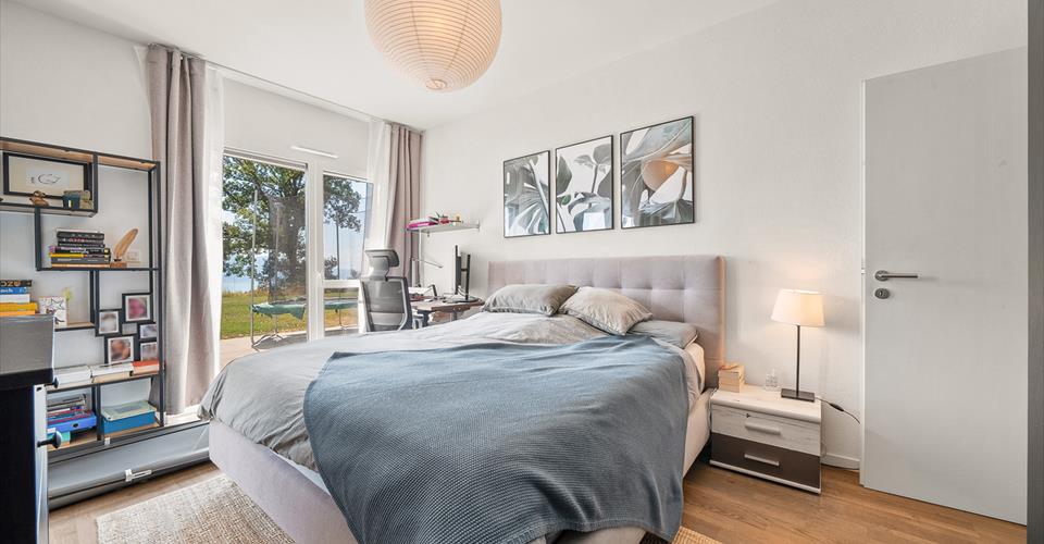 Appartement 3.5 pièces en rez-de-chaussée – Domaine des Cerisiers, Saint-Légier-La Chiésaz Idéalement situé au cœur de Saint-Légier-La Chiésaz, dans le prestigieux Domaine des Cerisiers, ce magnifique appartement de 3.5 pièces au rez-de-chaussée offre une surface habitable d’environ 88 m². Parfaitement adapté à un jeune couple ou une famille, ce logement combine le confort de la vie moderne avec le charme d’un cadre calme et verdoyant, tout en bénéficiant de la proximité immédiate de toutes les commodités du centre-ville. L’appartement dispose d’une grande terrasse d’environ 26 m², idéale pour profiter des belles journées ensoleillées. L’environnement résidentiel paisible se distingue par une vue imprenable sur le lac Léman et les Alpes, véritable tableau naturel à admirer au quotidien. L’immeuble respect les normes MINERGIE, se distingue également par ses qualités écoresponsables : chauffage à distance, toiture équipée de tuiles photovoltaïques sur le bâtiment voisin « Cerisiers Nord », et matériaux durables garantissent un confort de vie moderne et durable. Le Domaine des Cerisiers offre un parfait équilibre entre vie urbaine et nature, dans l’une des communes les plus prisées du canton de Vaud, à quelques minutes seulement de Vevey et de la Riviera vaudoise.