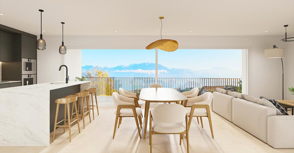 L’Écrin – Appartement de 3,5 pièces où prestige et tranquillité se rencontrent Au cœur de St-Légier, le raffinement au quotidien Découvrez un appartement de 3,5 pièces d’exception au centre de St-Légier. Finitions haut de gamme, espaces généreux et environnement paisible : ce bien conjugue élégance moderne et cadre de vie privilégié. Un espace conçu pour votre confort Cet appartement lumineux vous offre des volumes spacieux et bien pensés : séjour baigné de lumière, cuisine moderne et espaces nuit optimisés. Deux salles d’eau équipent ce logement : une avec douche moderne, l’autre avec baignoire, pour répondre à tous vos besoins. Une loggia élégante : l’extension parfaite de votre espace de vie L’un des atouts majeurs de cet appartement ? Une somptueuse loggia qui prolonge l’intérieur et vous permet de savourer pleinement la quiétude de la Riviera. Imaginez un coin de détente extérieur où chaque instant de calme devient une expérience intime et apaisante. Équipements et services 21 places vélos sécurisées à l’intérieur + 16 places sous abri extérieur Une place de stationnement en garage souterrain sécurisé Colonne de lavage intégrée Pré-équipement pour bornes de recharge électrique Technologies modernes et durables Certifié selon les normes SIA 384/1 et 384/2, L’Écrin mise sur l’innovation : Pompe à chaleur géothermique avec système Freecooling Panneaux photovoltaïques pour une énergie verte Gestion intelligente de l’énergie (RCP) Domotique E-Smart pour un pilotage personnalisé Options disponibles Places moto/cargo : 7’000.- l’unité Locaux en sous-sol équipés (11 à 18 m²) : dès 38’000.- L’Écrin : où modernité et authenticité se rencontrent Plus qu’un appartement, L’Écrin vous offre un cadre de vie d’exception à St-Légier. Une opportunité rare de concilier prestige contemporain et charme villageois. Informations et visites Contactez-nous pour découvrir cette résidence d’exception et organiser une visite de cet appartement unique.