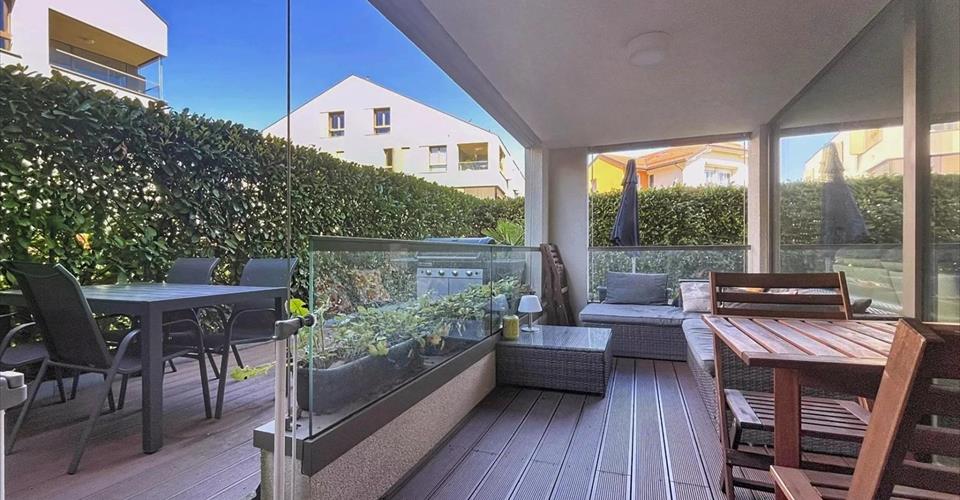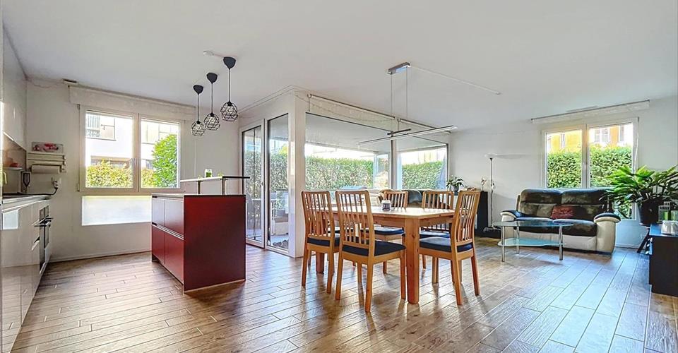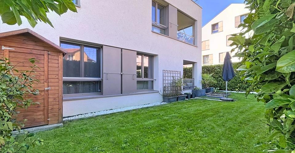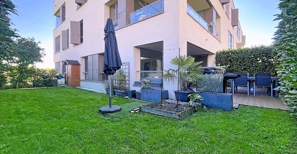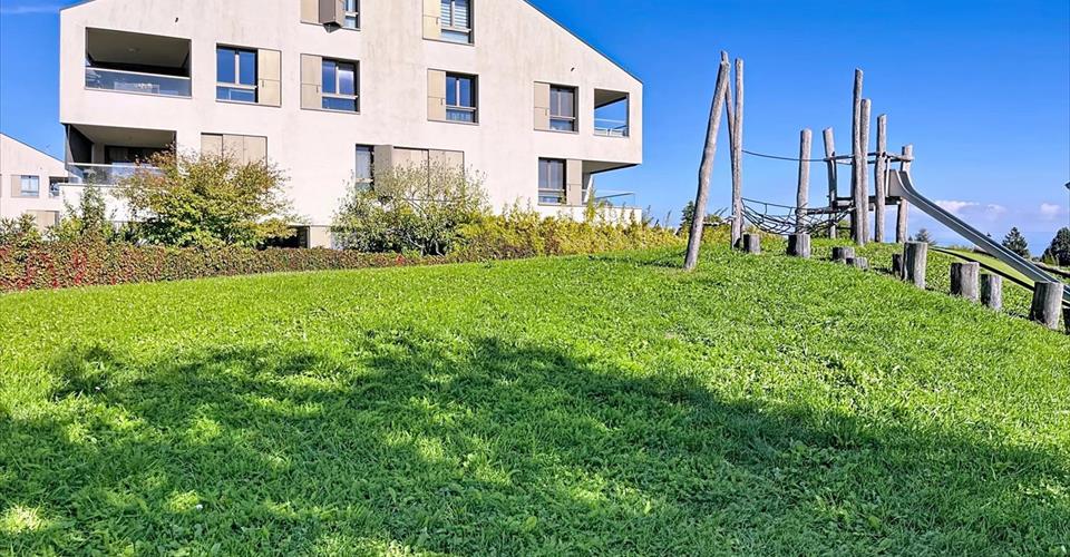 Omnia Immobilier vous présente en exclusivité ce spacieux appartement de 3,5 pièces, idéalement situé à seulement 5 minutes de Nyon, dans le charmant village de Borex. Bénéficiant d’un jardin privatif de 63 m² avec terrasse, il offre un cadre de vie rare et privilégié. La résidence, calme et familiale, dispose d’une place de jeux et se trouve à 1 minute de l’arrêt de bus et 4 minutes à pied des écoles, facilitant le quotidien des familles comme des actifs. À l’intérieur : un hall avec armoires intégrées, un vaste séjour lumineux avec cuisine ouverte, ainsi que deux chambres de 16 m² et 14 m². La partie sanitaire comprend une salle de bains avec WC, des WC visiteurs séparés, ainsi qu’une armoire avec branchements pour colonne de lavage. Construit avec des matériaux de qualité, l’appartement bénéficie du label Minergie, du chauffage au sol, d’une ventilation double flux et du CECB B/B, garantissant confort et performance énergétique. Une place de stationnement intérieure, une cave et un grand parking visiteurs complètent ce bien rare. Cet appartement représente une opportunité unique alliant confort, praticité et qualité de vie, dans un environnement calme et verdoyant, à deux pas de Nyon. À noter que cet appartement est vendu en droit de superficie distinct et permanent (DDP), inscrit au registre foncier.