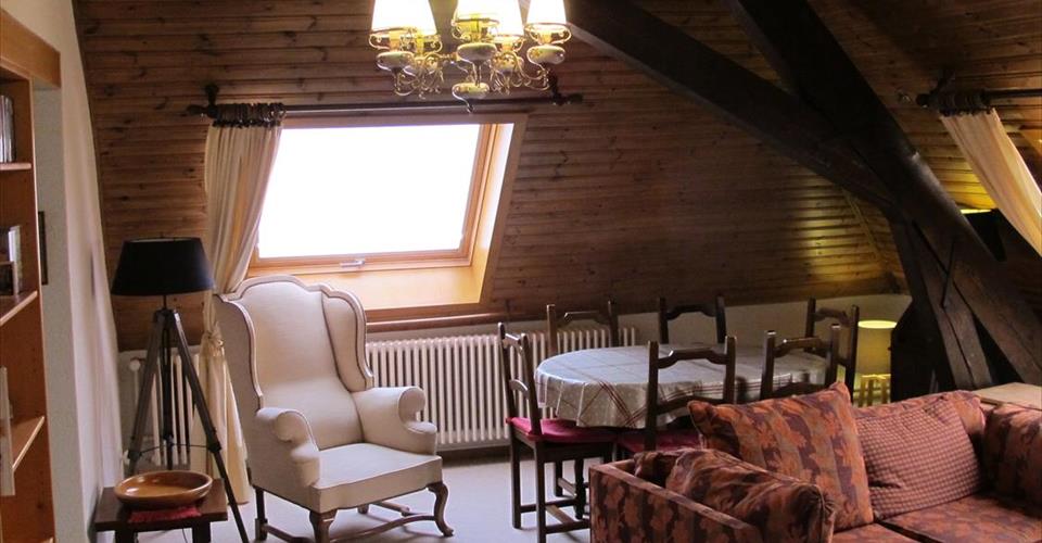 Situé dans le contexte magnifique du Grand-Hôtel des Rasses 3.5 pièces en duplex – appartement no 106 env. 90 m2 4ème étage, orientation sud, ouest et nord Chouette appartement de 3.5 pièces intelligemment distribué avec une grande pièces à vivre comprenant salon, cuisine et salle à manger. La cuisine est simplement équipée et complète avec ses plaques électriques, sa hotte de ventilation, son frigo et ses armoires. Sur cet étage il y encore une chambre à coucher d’une belle dimension et belle hauteur sous plafond, de grandes armoires murales ainsi que la salle de bains avec baignoire. A l’étage supérieur, on découvre une généreuse chambre à coucher avec poutres apparentes. Cette chambre permet la vue au sud sur la plaine et la chaine des Alpes. Toutes les fenêtres (velux) de l’appartement ont été changées récemment. Accès à l’appartement avec ascenseur et dernière flanquée d’escaliers avec monte-personnes. L’appartement est en bon état. Il est dans son jus « Swiss Historique Hotel » de même que le mobilier. En outre un petit local-réduit individuel d’environ 3 m3 situé au rez-de-chaussée de l’Hôtel est idéal pour stocker skis ou vélos. Lot 77 Cube : 255 m3 Les charges PPE s’élèvent mensuellement à chf. 740.– Situation : Cet appartement est situé dans un contexte calme, proche des pistes de ski alpin et de fonds. La région des Rasses est idéale pour les promenades en raquettes, à pied ou à vélo. Une piscine, un sauna, une salle de fitness, un minigolf ainsi qu’un court de tennis font partie des installations de l’Hôtel. Les copropriétaires y ont libre accès. Un grand parking est à disposition devant le bâtiment. Pour ce qui est des transports publics, un autobus assure la liaison avec la gare de Ste-Croix. La PPE : La PPE du Grand-Hôtel des Rasses est actuellement composée de 16 lots dont le principal appartient à la société d’exploitation de l’Hôtel. Les charges annuelles de PPE pour cet appartement de 246 ‰ sur un total de 9’840‰ sont approximativement de Fr. 8’900.– par année. Elles comprennent notamment le chauffage à mazout, l’électricité, l’eau, les assurances, la protection incendie, l’entretien des parties communes piscine, sauna, tennis, ascenseur, le déneigement et l’entretien extérieur ainsi que les frais d’administration. La répartition se fait en m3 pour le chauffage et en millièmes pour les autres charges. Chaque année l’assemblée de la PPE décide des travaux à effectuer. Ce lot de PPE n’est pas mis à disposition de la gestion hôtelière. Prix de vente : Fr. 369’000.–