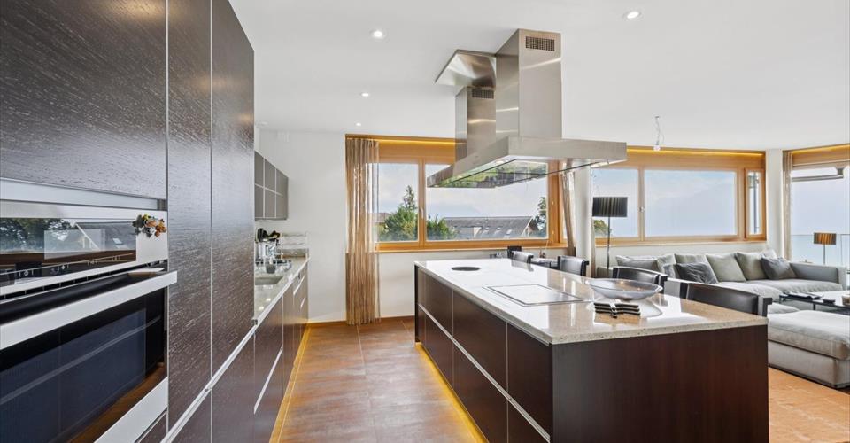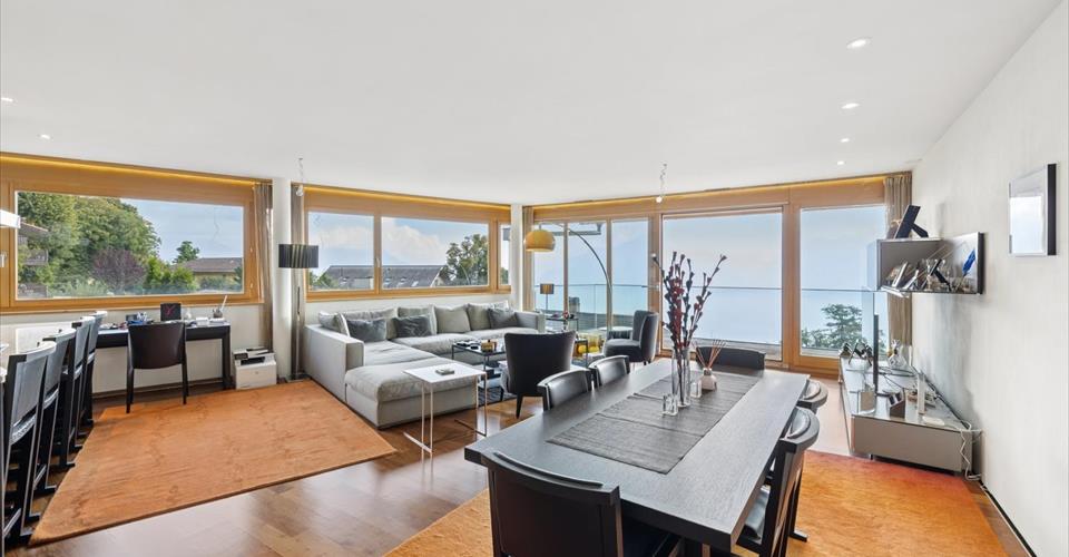 Sur les pentes ensoleillées de Chardonne, cet appartement raffiné au 1er étage allie finitions haut de gamme et vues imprenables sur le lac Léman et les Alpes. Conçu pour le confort et le raffinement, il offre un cadre de vie exceptionnel dans une résidence calme et intime de seulement cinq unités, située sur un généreux terrain en bordure de forêt. À l’intérieur, l’appartement se déploie dans un espace de vie lumineux et ouvert avec une cuisine entièrement équipée comprenant un îlot central, des appareils haut de gamme, ainsi qu’une plaque teppanyaki et un wok intégrés. Le spacieux salon s’ouvre sur un balcon avec des vues spectaculaires, agrémentées d’un éclairage élégant, de stores électriques et d’une abondance de lumière naturelle. Deux chambres paisibles, chacune avec salle de bains attenante, complétées par un WC visiteur, des armoires encastrées spacieuses et une buanderie dédiée. L’une des chambres a un accès direct à une terrasse pour le café du matin ou la lecture de l’après-midi. Les intérieurs sont définis par un parquet en bois de haute qualité et des installations de salle de bains haut de gamme, tandis que les multiples sources d’éclairage créent une ambiance raffinée dans tout l’appartement. Les résidents bénéficient du droit d’utiliser le jardin communal magnifiquement entretenu, y compris une parcelle de potager privé attribuée à l’appartement. Le bâtiment lui-même reflète la durabilité moderne, équipé de panneaux solaires. Une cave et deux places de parking intérieures pour un supplément de CHF 80’000 complètent cette offre rare. Vendu entièrement meublé (prix du meuble à convenir), cet appartement est une opportunité clé en main pour embrasser le style de vie unique de Chardonne?où vignobles, nature et horizons spectaculaires se rencontrent. Sur les pentes ensoleillées de Lavaux, un site du patrimoine mondial de l’UNESCO, Chardonne offre un cadre idyllique où les vignobles rencontrent des vues imprenables sur le lac Léman et les Alpes. Ce charmant village viticole est réputé pour son atmosphère paisible, son caractère authentique et sa qualité de vie privilégiée. Vivre à Chardonne signifie profiter du meilleur des deux mondes : vivre à la campagne en toute tranquillité entouré de vignobles en terrasses, tout en étant à quelques minutes de la ville dynamique de Vevey et des attractions culturelles de Montreux. La commune bénéficie également d’excellentes connexions de transport, y compris un funiculaire reliant directement Vevey, un accès rapide à l’autoroute et une proximité avec les écoles internationales. Avec son mélange harmonieux de nature, de tradition et de commodités modernes, Chardonne est une adresse prisée pour ceux qui cherchent un style de vie raffiné au c?ur de la Riviera suisse.