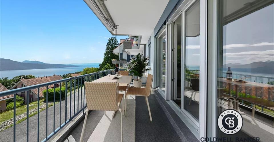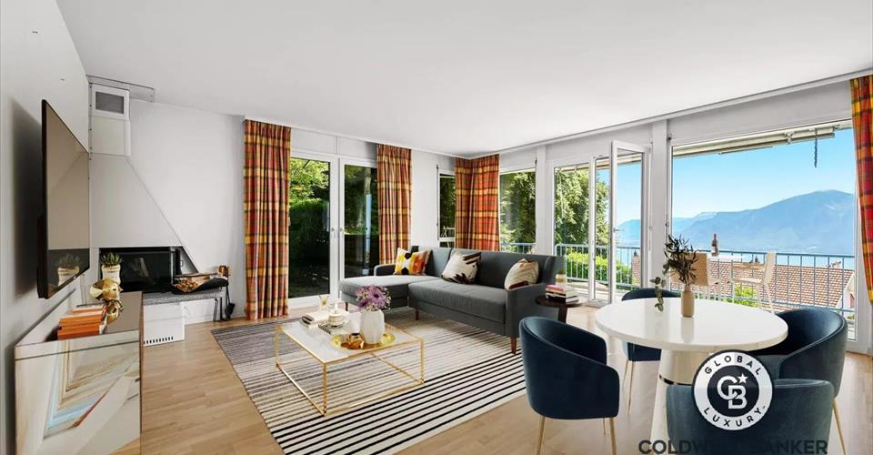 BAISSE DE PRIX! Situé au Mont-Pèlerin dans les hauts de Chardonne, dans un cadre verdoyant prisé, ce 3.5 pièces bénéficie d’un panorama spectaculaire sur le lac Léman et les Alpes, à deux pas des commodités de la Riviera. Le séjour d’env. 28 m², avec cheminée et cuisine ouverte, s’ouvre sur un balcon exposé sud de 12 m². L’espace nuit comprend deux chambres : une suite parentale de 16 m² et une seconde chambre avec terrasse privative. Une cave, une buanderie commune, un garage box et une place extérieure à CHF 50’000.- en sus complètent ce bien. Accès direct à l’immeuble depuis le garage. Vente en résidence secondaire autorisée. Visite uniquement en présence et/ou avec l’accord préalable de Coldwell Banker Swiss Riviera. Aucun document ne peut être transmis à des tiers sans autorisation.