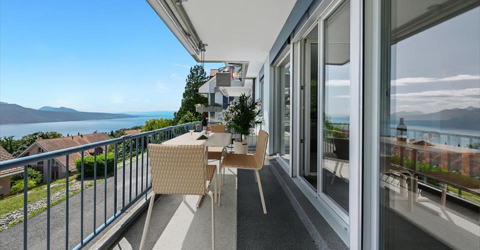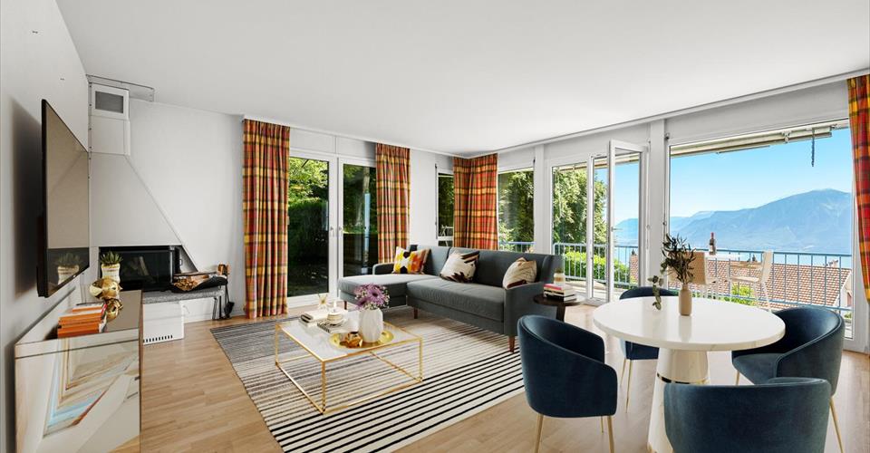 BAISSE DE PRIX! Situé au Mont-Pèlerin dans les hauts de Chardonne, dans un cadre verdoyant prisé, ce 3.5 pièces bénéficie d’un panorama spectaculaire sur le lac Léman et les Alpes, à deux pas des commodités de la Riviera. Le séjour d’env. 28 m², avec cheminée et cuisine ouverte, s’ouvre sur un balcon exposé sud de 12 m². L’espace nuit comprend deux chambres : une suite parentale de 16 m² et une seconde chambre avec terrasse privative. Une cave, une buanderie commune, un garage box et une place extérieure à CHF 50’000.- en sus complètent ce bien. Accès direct à l’immeuble depuis le garage. Vente en résidence secondaire autorisée. Visite uniquement en présence et/ou avec l’accord préalable de Coldwell Banker Swiss Riviera. Aucun document ne peut être transmis à des tiers sans autorisation.