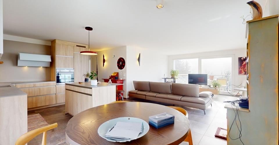 Possibilité de bénéficier de la reprise d’hypothèque actuelle à 1.00% jusqu’en 2031 ! Appartement-villa terrasse en PPE de 3.5 pièces situé au dernier étage, à quelques minutes du centre-ville à l’abri des nuisances avec vue panoramique sur la chaîne du Jura. Superbe terrasse vous permettant de profiter d’une vue imprenable sur de magnifiques couchers de soleil ainsi que le massif du Jura. Jouissance du jardin. Environnement calme et verdoyant. Surface appartement env. 89 m2 Surface balcon env. 11 m2 Surface terrasse env. 16 m2 Surface pondérée env. 100 m2 Cette parcelle se trouve en lisière de forêt à l’abri des nuisances, tout en étant à proximité immédiate des commodités nécessaires (commerces, transports publics, restaurants, bord du lac, écoles publiques, axes autoroutiers, centres de loisirs, centre thermal, etc.). Distribution : Hall d’entrée avec armoires murales, chambre, salle de bains avec buanderie privative, chambre avec accès à la terrasse, cuisine ouverte entièrement agencée avec îlot central, séjour / salle à manger avec accès à la terrasse. Une cave ainsi qu’une place de parc extérieure complètent ce bien. Place de parc en sus. Toutes offres sérieuses seront étudiées avec attention. Disponible de suite ou à convenir.