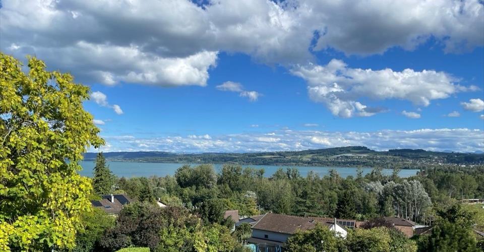 A 5 minutes d’Yverdon avec magnifique vue sur le lac, bel appartement lumineux de 3,5 pièces occupant tout l’étage des combles COMBLES Hall d’entrée avec armoire vestiaire Cuisine ouverte avec un espace repas avec accès au balcon Vaste séjour avec accès au balcon Suite parentale avec espace dressing et salle d’eau privative avec baignoire/lavabo/WC 1 chambre Salle d’eau avec douche/lavabo/WC ainsi que machines à laver et sécher (variante en bureau) 1 cave en sous-sol Place de parc extérieur en sus TRES BELLES FINITIONS
