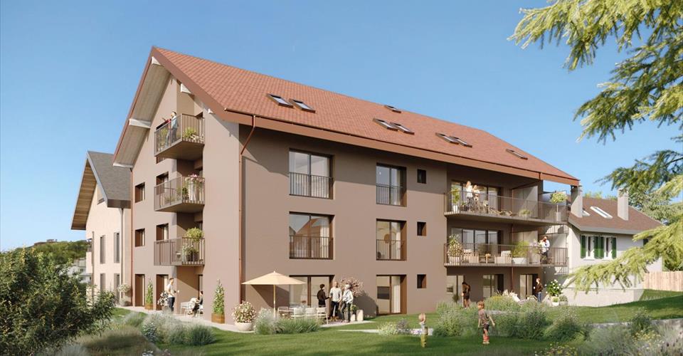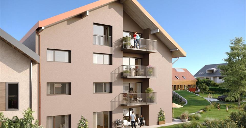 Au rez de chaussée avec terrasse et jardin Appartement de 3.5 pièces, soit 94 m2 habitables, 2 chambres à coucher. Sise à 4km de Morges, dans le charmant village de Denens, notre superbe promotion Terre & Vignes se décline en deux constructions bien distinctes, et néanmoins complémentaires, 1 bâtiment de 10 appartements, et 2 villas jumelées. Découvrez le site de la promotion https://terre-et-vignes-denens.ch/