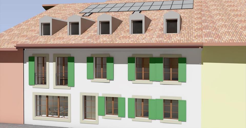 A 8′ de Morges, dans le charmant village de Denges, transformation d’une bâtisse existante qui comprendra 7 lots. VISITES EGALEMENT LE WEEK-END! PERMIS EN FORCE Vous serez séduit par cette magnifique promotion dans une bâtisse datant de env. 1800. Mariage entre le moderne et l’ancien, poutres apparentes! Début des travaux: mi-septembre 2025 Vente à terme avec versement des fonds propres chez le notaire. Rez-de-chaussée . Appartement 3.5 pièces de 101m2 – lot 1: Hall d’entrée Séjour / salle à manger avec cuisine ouverte entièrement équipée de 30m2 1 chambre à coucher de 13m2 1 salle de bains avec baignoire / douche 1 WC visiteurs 1 place de parc extérieure en sus Fr. 15’000.00