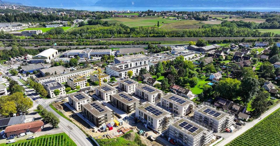 Emplacement idéal : Situé entre Lausanne et Morges, le charmant village d’Échandens offre un cadre de vie paisible avec tous les avantages, mêlant campagne et proximité urbaine : accès rapides à l’EPFL, aux transports publics, à l’autoroute, ainsi qu’aux écoles, commerces, restaurants et médecins. Les bus 702 et 705 vous emmènent à Bussigny, Morges et l’EPFL. Les écoles primaires sont au village et les écoles secondaires à Lonay. Un cadre verdoyant unique : La résidence, nichée au cœur d’un splendide parc paysager de 1,5 hectare, bénéficie d’une conception harmonieuse où nature et architecture contemporaine s’unissent. Le parc, richement arboré et doté d’un biotope, évolue au fil des saisons et garantit un environnement calme et serein. Des espaces verts favorisent la tranquillité, la promenade et les échanges. Écoresponsabilité et confort : – Chauffage et eau chaude par pompes à chaleur géothermiques – Panneaux solaires en toiture – Récupération des eaux de pluie pour l’arrosage et le biotope – Parking souterrain avec pré-équipement pour bornes de recharge électrique Des appartements modernes et spacieux : La résidence propose des logements du 3.5 pièces de 88 m² au 4.5 pièces de 118 m² habitables, tous bénéficiant de terrasses, balcons ou jardins privatifs ainsi que de finitions haut de gamme : – Parquet en chêne – Cuisine équipée avec électroménager ZUG – Salles de bains raffinées – Confort acoustique et thermique optimal – Buanderie privative au sous-sol Livraison prévue : Mars 2026 Un cadre rare où confort, nature et modernité s’harmonisent à la perfection. Place de parc intérieure en sus CHF 40’000.- Place moto en sus CHF 6’000.-