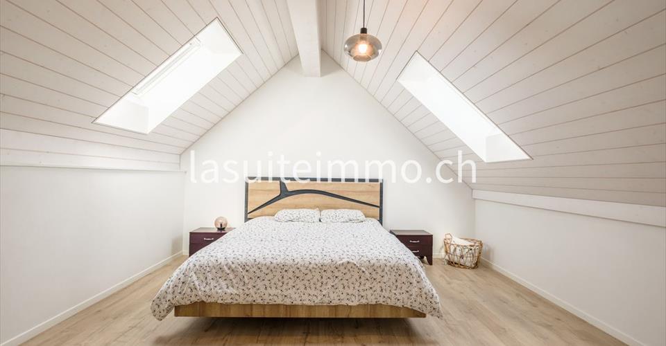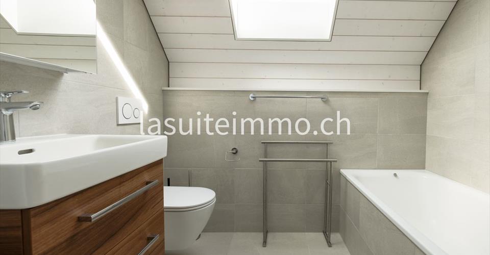 ? En exclusivité à Etoy – Superbe duplex contemporain de 3.5 pièces ? Situé au 2? et dernier étage d’un immeuble récent avec ascenseur, ce magnifique duplex de 119 m² habitables (construit en 2019) vous séduira par son modernité, sa luminosité et son cadre verdoyant, tout en restant à deux pas des écoles, commerces et axes autoroutiers. ?? Un art de vivre harmonieux et lumineux L’appartement se compose de : Un hall d’entrée avec armoires encastrées pour un rangement optimal Une cuisine ouverte, entièrement équipée, donnant sur un vaste séjour baigné de lumière et prolongé par une terrasse de 13 m² orientée Sud-est Une spacieuse première chambre avec accès direct à la terrasse et salle de bain attenante (avec possibilité d’installer une colonne de lavage) À l’étage : une seconde chambre cosy avec de nombreux rangements et une salle de bain supplémentaire, garantissant intimité et confort ? Des atouts qui font la différence Finitions haut de gamme et matériaux de qualité Volumes généreux et ambiance chaleureuse Deux places de parking intérieures (CHF 50’000.- en sus) Une adresse où calme et modernité se rencontrent, parfaite pour les personnes en quête d’un lieu de vie élégant et fonctionnel. ?? Une opportunité rare à Etoy ! Contactez-moi dès maintenant pour organiser une visite et découvrir ce duplex prêt à accueillir votre nouveau projet de vie.