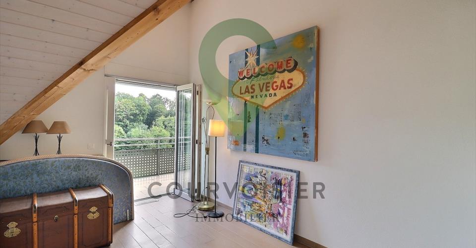 Au cÅ“ur des vignes et de la verdure, à quelques minutes seulement d’Aubonne et de Rolle, ce superbe appartement de 3,5 pièces séduit par son charme et son élégance. Avec 106 m² habitables, il offre de beaux volumes et une atmosphère raffinée. Situé au 2ᵉ étage d’un charmant immeuble de style villageois construit en 2010, cet appartement se distingue par sa luminosité généreuse et sa distribution harmonieuse. Véritable atout majeur, sa superbe mezzanine d’environ 35 m² apporte une valeur ajoutée indéniable : que vous rêviez d’une chambre supplémentaire, d’un bureau élégant ou d’un espace de vie convivial, elle s’adapte à toutes vos envies et styles de vie. L’immeuble, parfaitement entretenu, répond aux standards énergétiques actuels. Son architecture soignée s’intègre avec élégance dans le paysage. Il est également pensé pour être accessible aux personnes à mobilité réduite. La distribution de l’appartement se compose comme suit : Un hall d’entrée avec armoires murales intégrées Une grande pièce de vie comprenant une cuisine contemporaine (avec un réduit/cellier) ouverte sur le chaleureux séjour/salle à manger. L’espace donne sur un agréable balcon permettant de profiter du dégagement champêtre. Un WC visiteurs avec espace buanderie intégré Deux grandes chambres avec rangements Une salle de bains avec baignoire, douche, lavabo et WC Une mezzanine spacieuse et modulable avec accès direct à un dressing. En complément, l’appartement dispose d’une cave spacieuse. Deux places de stationnement sont disponibles, l’une intérieure et l’autre couverte en extérieur (en sus). Ces atouts pratiques renforcent encore le confort et l’attrait de ce bien. Un cadre verdoyant, des espaces lumineux et un confort moderne : cet appartement offre une qualité de vie rare, idéale pour celles et ceux qui recherchent sérénité et élégance à proximité immédiate des commodités.