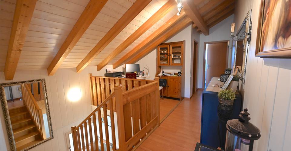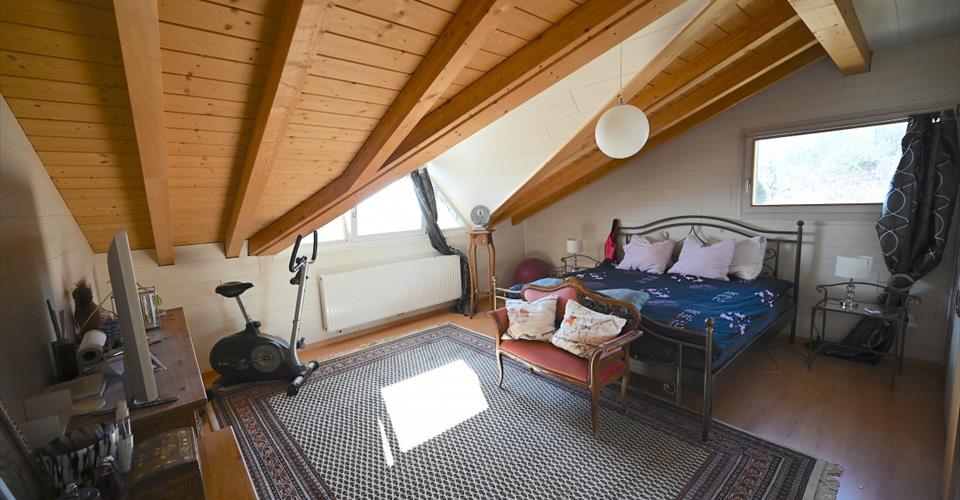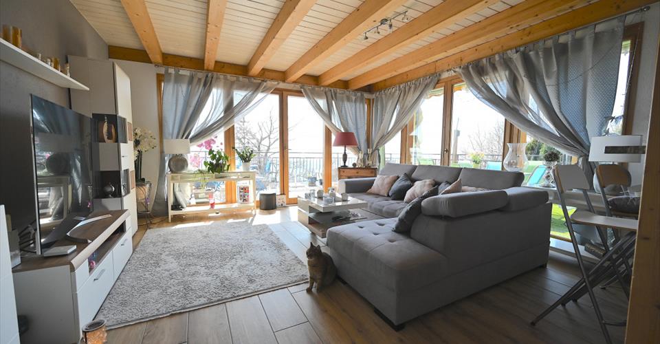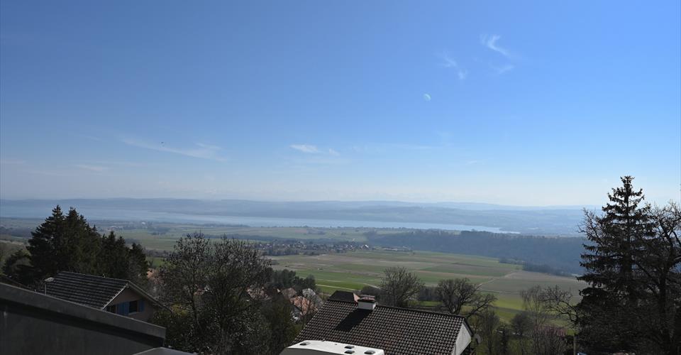 EN EXCLUSIVITE ! Dans la commune de Grandevent, ce 3.5 pièces se situe dans un quartier résidentiel sans la moindre nuisance. Il occupe la moitié d’une belle villa composée de trois logements seulement. Il est situé à 7 min. en voiture de la sortie autoroute Grandson et à environ 15 min. d’Yverdon-les-Bains et toutes ses commodités. Un bus dessert le village et le premier commerce se trouve à 5 min. en voiture dans le village voisin. Construit en 2006, il a été rafraichi en 2021 dans un esprit moderne. Ses poutres apparentes lui apportent beaucoup de cachet. Il bénéficie d’une incroyable vue sur la chaîne des Alpes et le lac. Ce duplex est très lumineux de par ses grandes baies vitrées et son exposition sud-ouest. Il est composé d’un large balcon ainsi que d’une grande et belle terrasse de 37 m2. Un grand terrain d’environ 430 m2, un garage box deux places, une place de parc extérieure et un local de rangement complètent ce bien. Il ravira les amoureux de la nature avec de nombreuses ballades en forêt à proximité immédiate. Il serait possible d’y faire une pièce supplémentaire et donc d’en faire un 4.5 pièces. DISTRIBUTION Rez supérieur – Hall d’entrée avec WC visiteurs – Superbe et grande cuisine avec plateau en granit ouverte sur la salle à manger – Spacieux séjour lumineux de par ses grandes baies vitrées – Charmant balcon et belle terrasse avec superbe vue panoramique sur le lac et les Alpes Etage – Deux belles et grandes chambres dont une profitant de la vue – Espace bureau – Salle de bain avec WC – Grand galetas pouvant être transformé en chambre supplémentaire Sous-sol – Local technique – Buanderie ANNEXES – Grand terrain privatif d’environ 430 m2 – Garage boxe deux voitures avec porte électrique (30’000 CHF en sus du prix du vente) – Local de stockage construit en 2021 pouvant également faire office de cave – Une place de parc (10’000 CHF en sus du prix de vente)